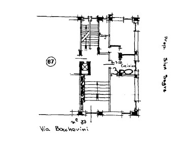 alloggio al piano rialzato (1° f.t.), composto di ingresso, una camera, soggiorno, cucinino e servizi ed annessa cantina, al secondo piano interrato