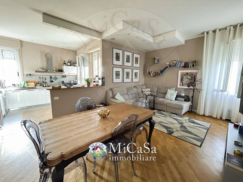 Limmobile, libero su quattro lati, si presenta in perfette condizioni ed è composto da: ingresso da terrazza abitabile, ampia zona giorno open space con cucina a vista e accesso al balcone di servizio, tre camere (una matrimoniale con accesso al balcone, una media e una singola - adibita a cabina armadio), disimpegno notte, e bagno finestrato con box doccia.