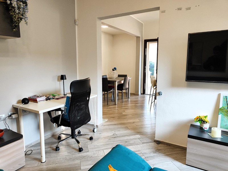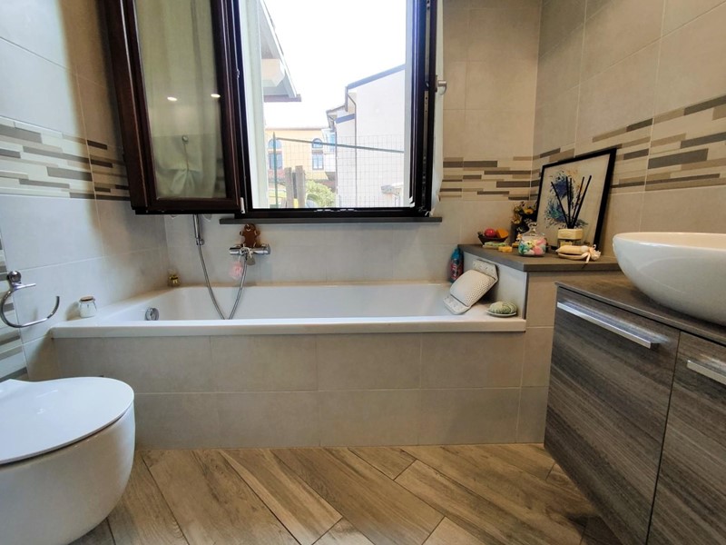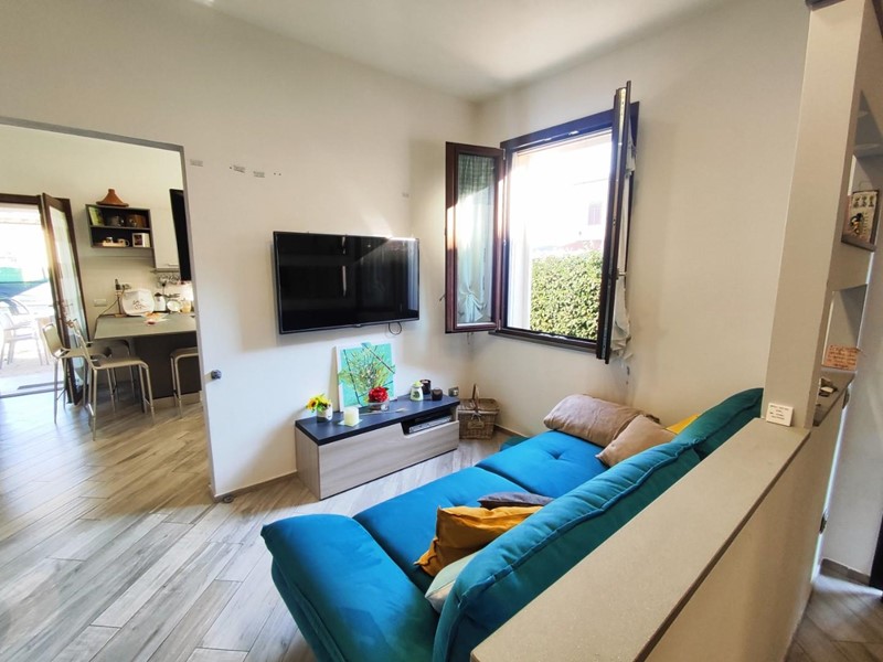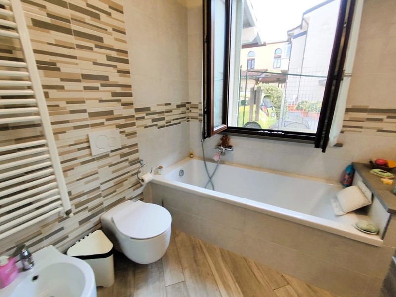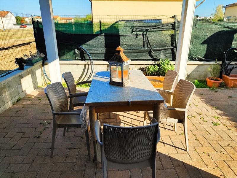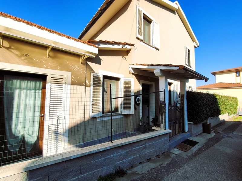 Situata in una zona tranquilla ma vicino ai principali servizi, questa casa singola di circa 117 mq. offre un soggiorno accogliente che si collega a una cucina con zona pranzo, da cui si accede a un'area esterna con pergolato, attrezzata barbecue e tavolo. Al piano terra si trovano anche un bagno con vasca, un ripostiglio e un locale di sgombero, oltre a un pratico ripostiglio esterno. Al primo piano, la zona notte comprende una camera matrimoniale con ripostiglio privato, una camera singola e un bagno con doccia. La proprietà è dotata di comfort moderni, tra cui riscaldamento e raffrescamento a pavimento, sistema d'allarme, infissi nuovi, climatizzatori, colonnina per auto elettrica e predisposizione per il caminetto.