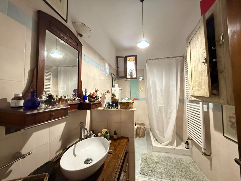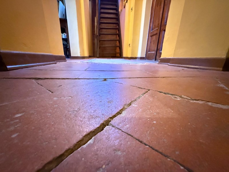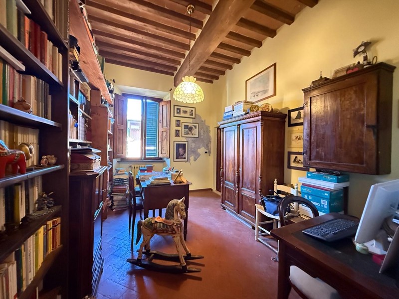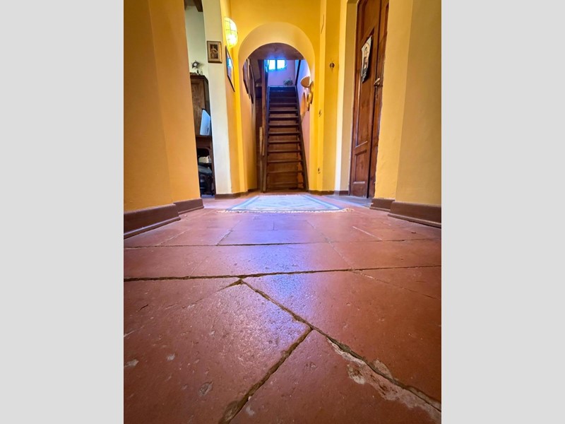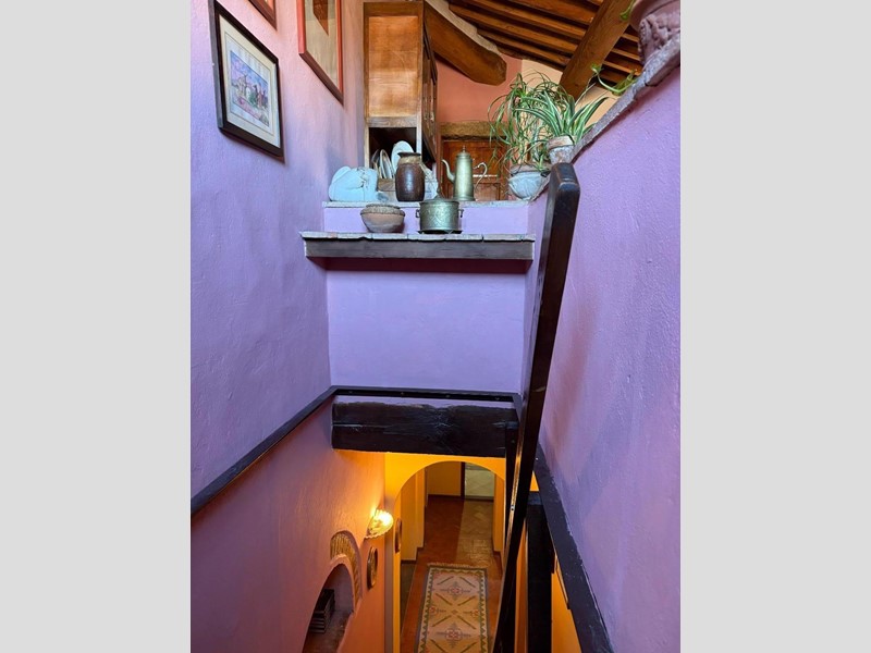 L’appartamento, di circa 119 mq, si sviluppa su due livelli, mantenendo intatto il fascino rustico toscano: pavimenti in mezzane originali, travi e travicelli in legno, dettagli d’epoca che dialogano armoniosamente con la praticità contemporanea.