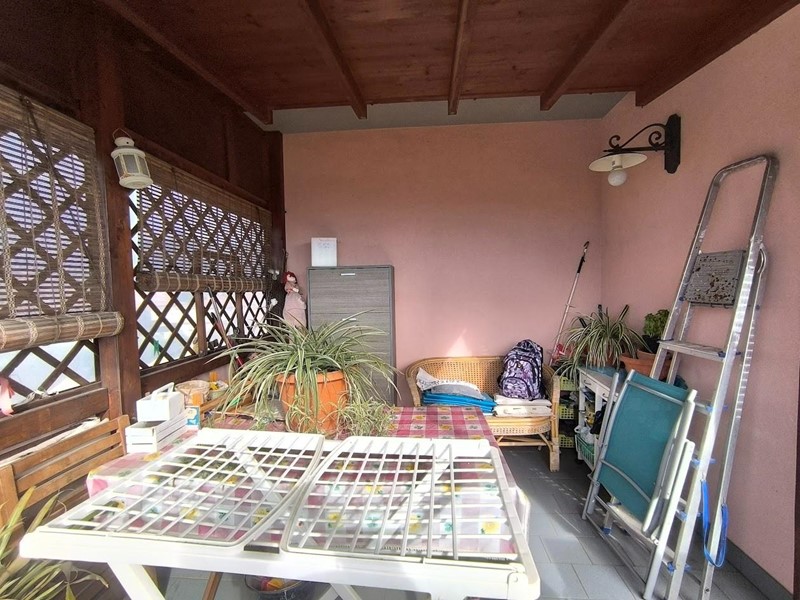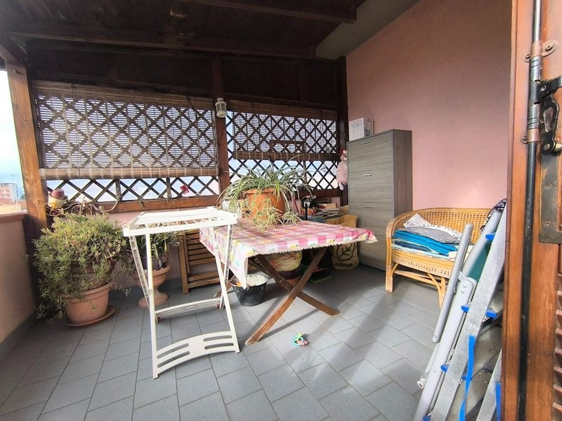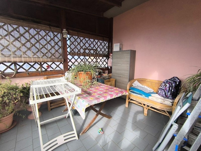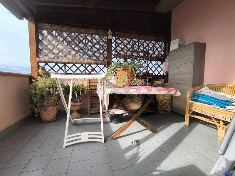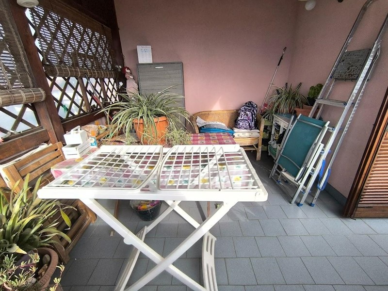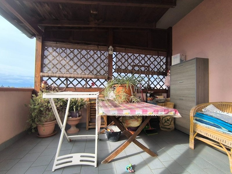 L'appartamento è situato al terzo piano con ascensore ed ha tutte le comodità che si possano desiderare in meno di 70 mq. Ingresso tradizionale che ci accompagna nel soggiorno con cucina a vista con accesso a piccolo balcone utilizzato come zona lavanderia. Mentre dal soggiorno si accede ad un lungo balcone che serve anche l'accesso alla camera, oltre alla vera chicca della casa. ossia una terrazza semicoperta abitabile molto grande. Dalla zona giorno si accede al disimpegno, una camera matrimoniale ed il bagno con doccia e finestra. L'appartamento gode di ottima esposizione ed è davvero luminoso. Al piano terra di proprietà esclusiva è presente il garage ed un posto auto scoperto.