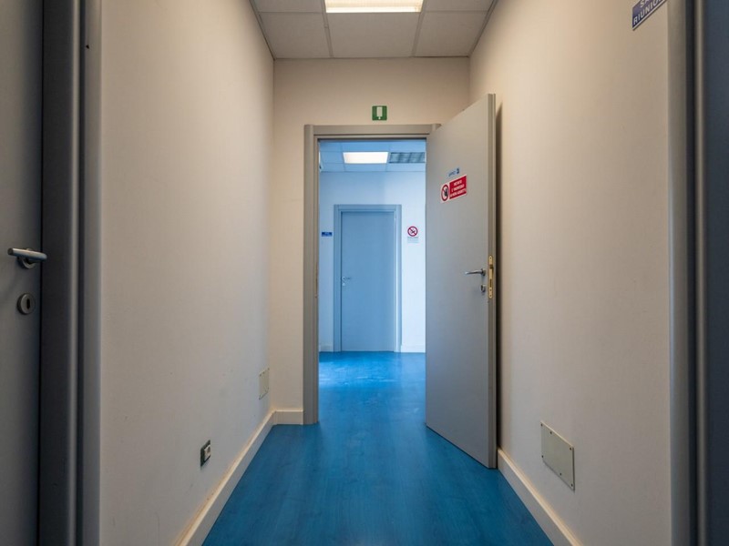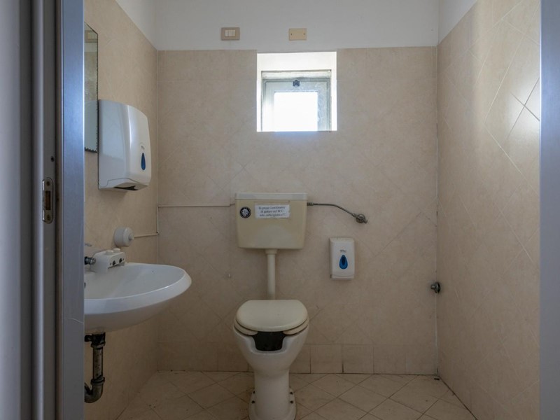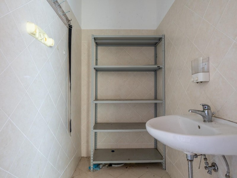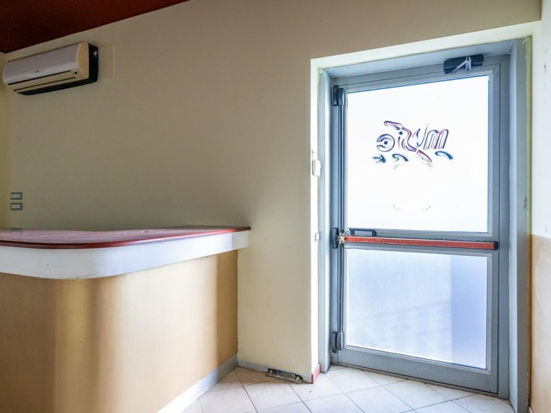 La precedente attività ha diviso l'immobile in più locali ma è ripristinabile in un unico ambiente ed è possibile riaprire un portone sulla facciata principale. Attualmente presenta la seguente suddivisione: cinque locali oltre ingresso e servizi al piano terra, mentre al piano primo, raggiungibile mediante scala interna, un atrio, cinque locali e servizi.