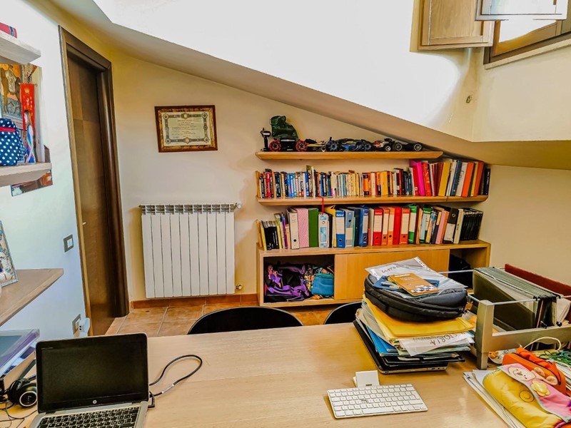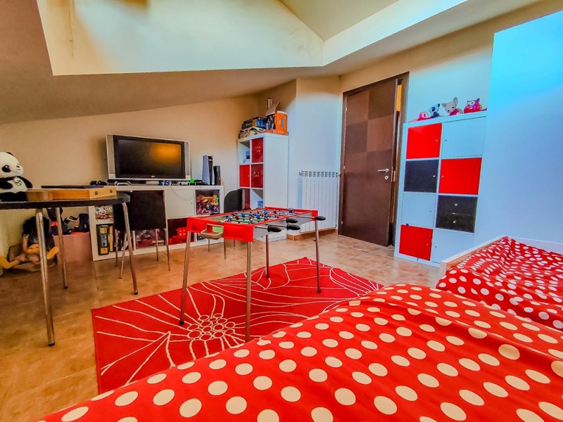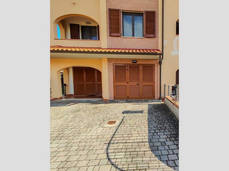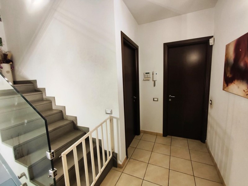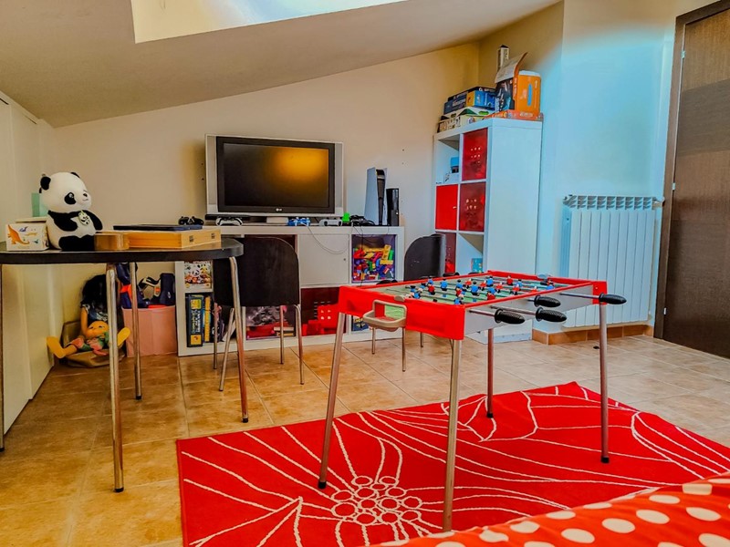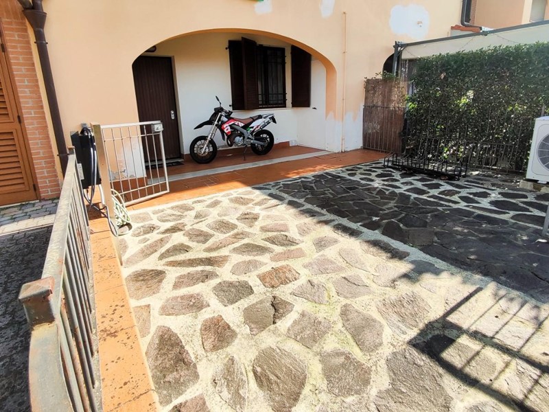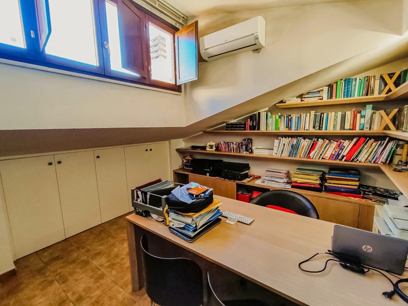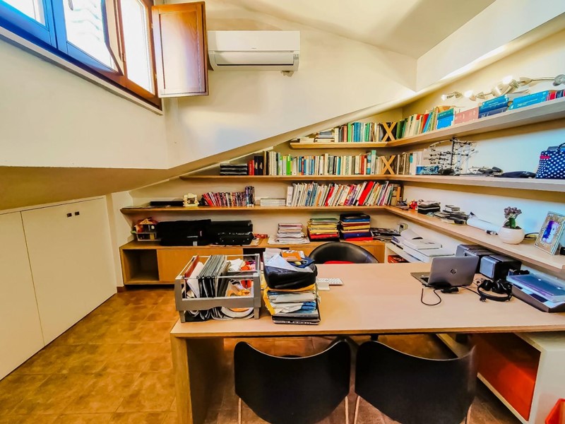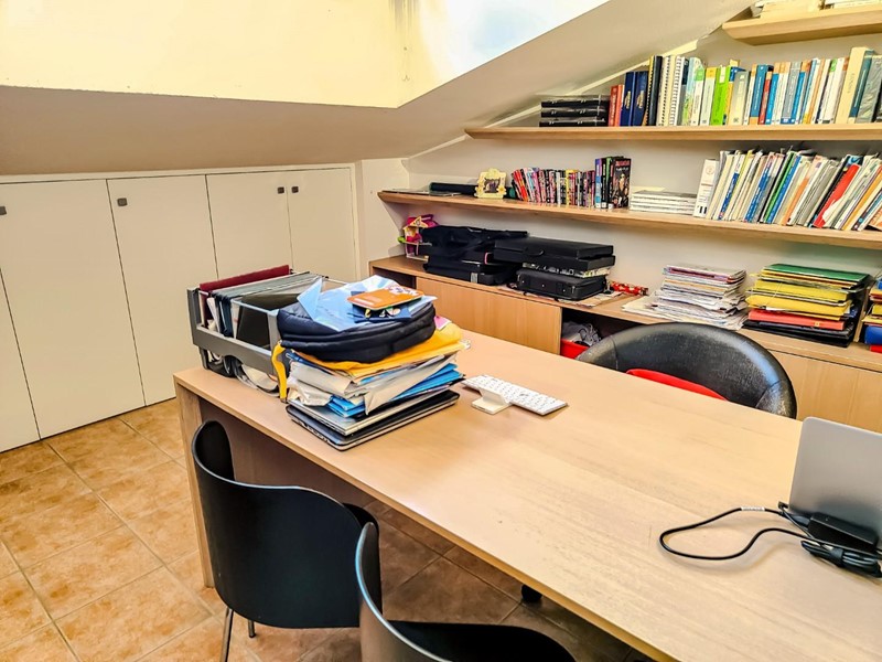 In una zona residenziale esclusiva e tranquilla, si trova un elegante terratetto con ingresso indipendente, distribuito su più livelli. La zona giorno è collegata a una cucina funzionale con accesso diretto a un piccolo spazio esterno e alla zona pranzo; il piano include anche un bagno di servizio con doccia. Al primo piano si trovano un bagno con vasca, una camera matrimoniale con terrazzo privato e una seconda camera, anch'essa con terrazzo. Al secondo piano mansardato, è presente un'ulteriore camera da letto e uno studio. La proprietà è dotata di tutti i comfort moderni, tra cui pannelli solari, sistema d'allarme e videosorveglianza, climatizzatori in ogni stanza e una colonnina per la ricarica di auto elettriche.