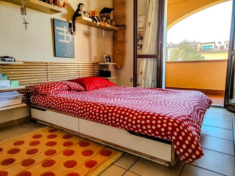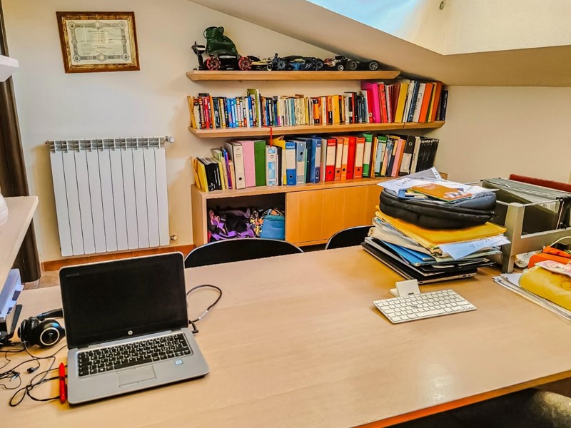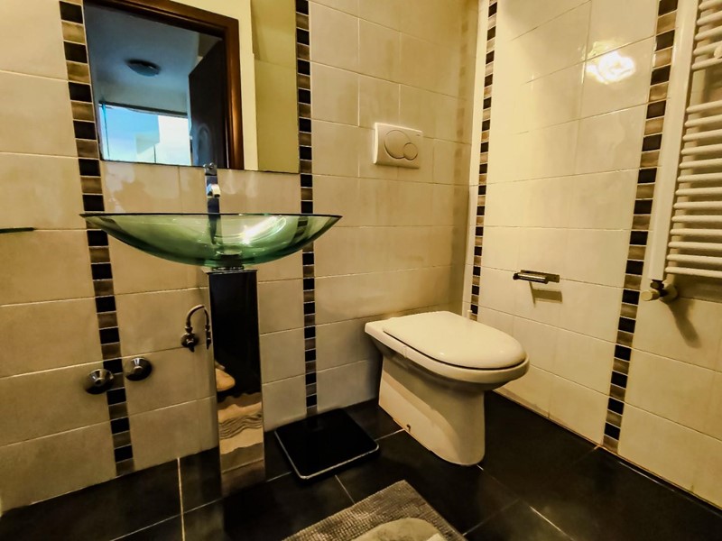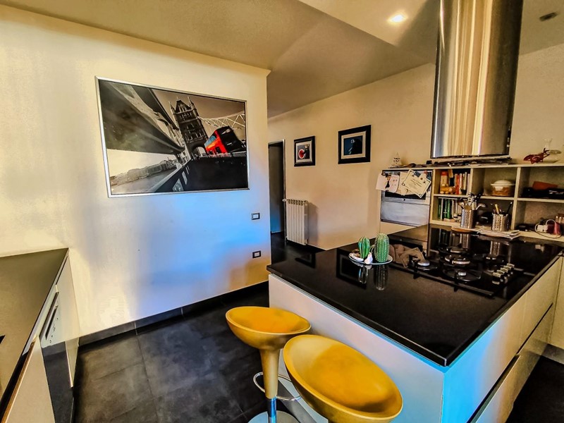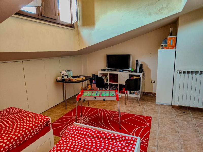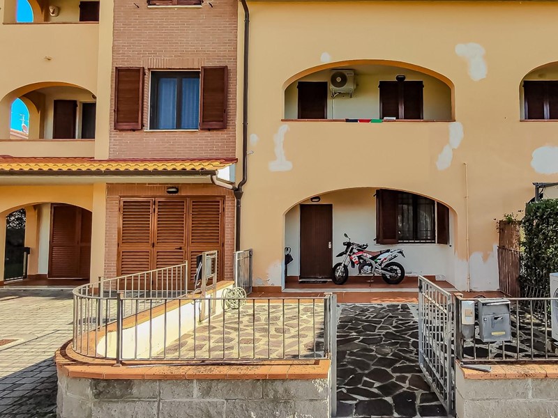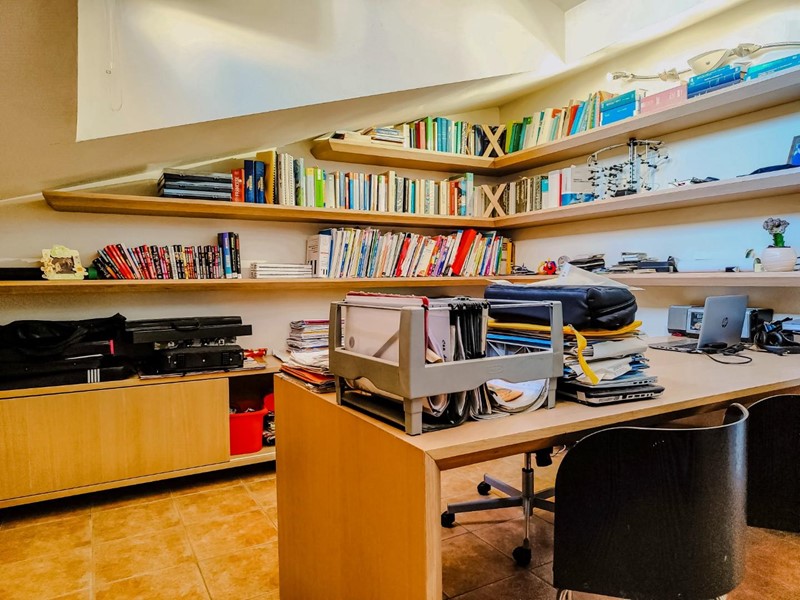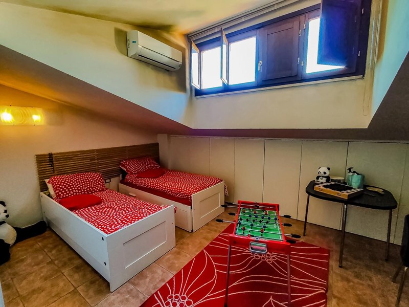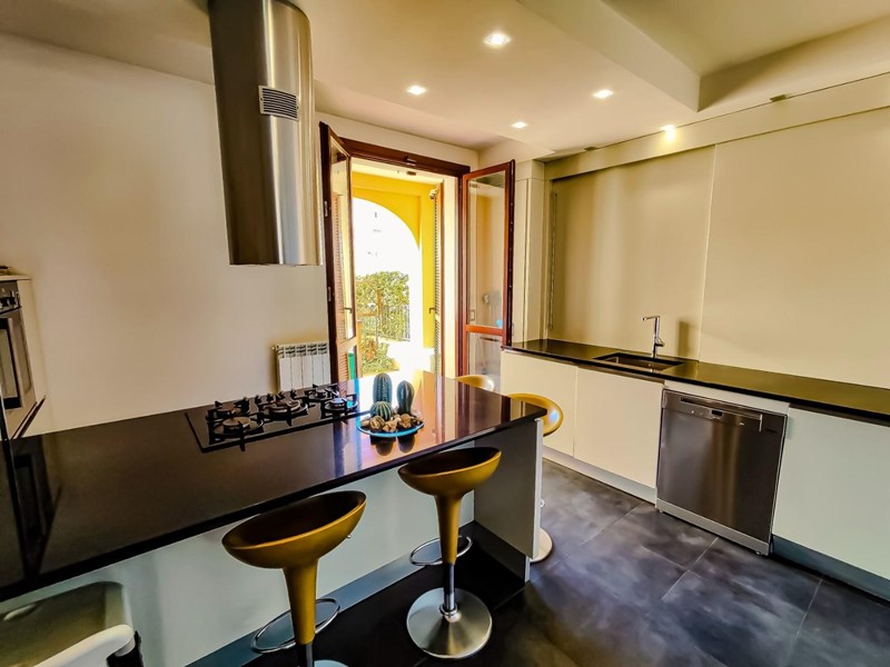In una zona residenziale esclusiva e tranquilla, si trova un elegante terratetto con ingresso indipendente, distribuito su più livelli. La zona giorno è collegata a una cucina funzionale con accesso diretto a un piccolo spazio esterno e alla zona pranzo; il piano include anche un bagno di servizio con doccia. Al primo piano si trovano un bagno con vasca, una camera matrimoniale con terrazzo privato e una seconda camera, anch'essa con terrazzo. Al secondo piano mansardato, è presente un'ulteriore camera da letto e uno studio. La proprietà è dotata di tutti i comfort moderni, tra cui pannelli solari, sistema d'allarme e videosorveglianza, climatizzatori in ogni stanza e una colonnina per la ricarica di auto elettriche.