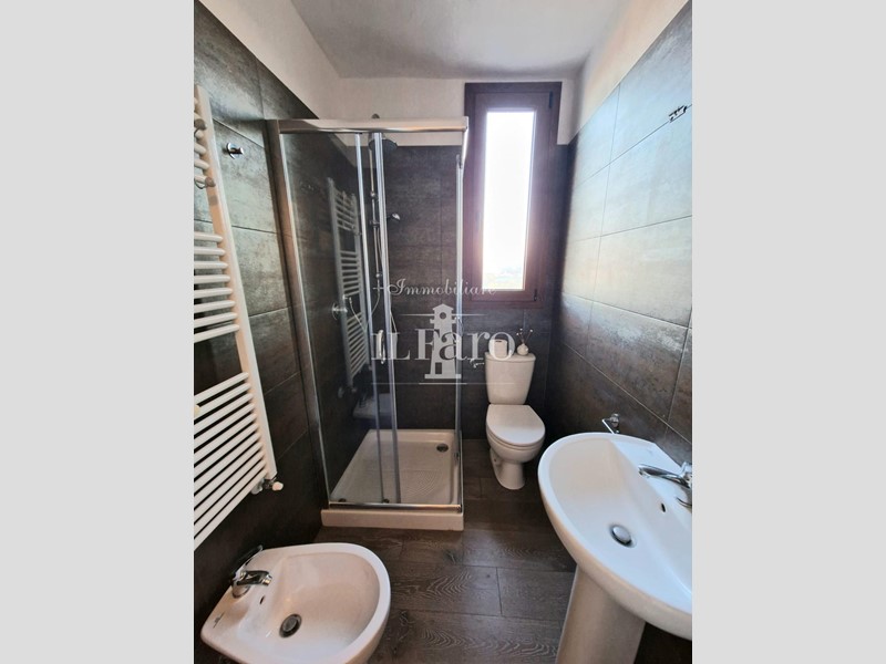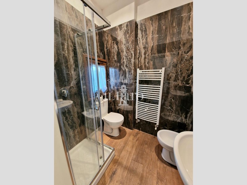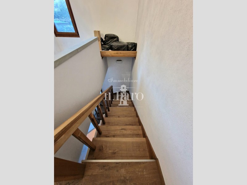 Salendo delle scale di arredo in legno raggiungiamo il primo piano composto da una camera da letto matrimoniale e un bagno con doccia e finestra.
