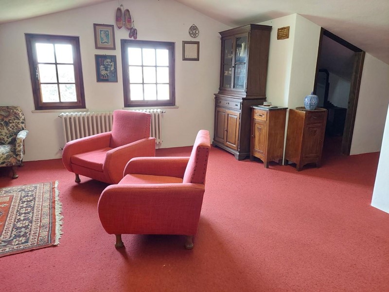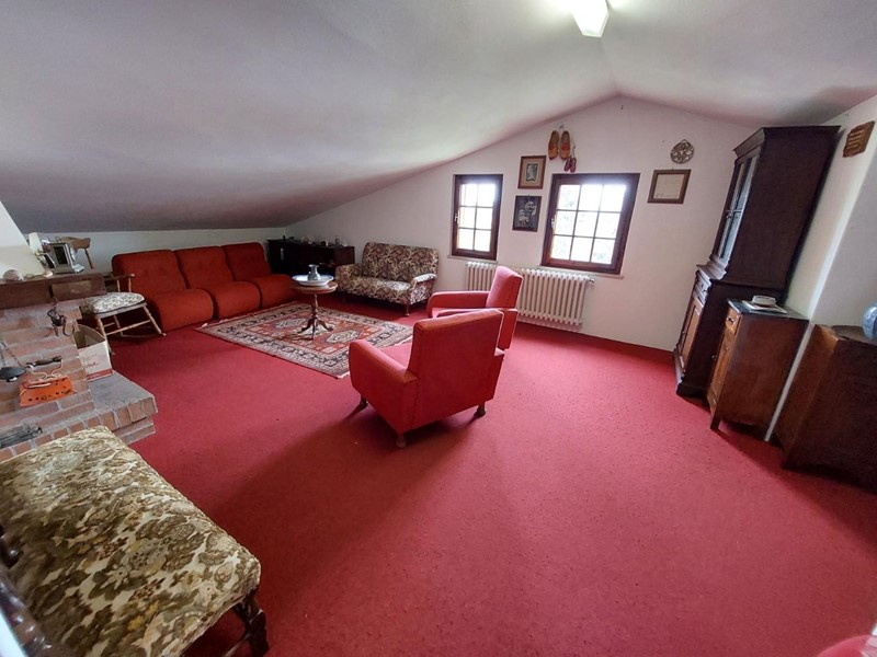 Località Polveroni villa bifamiliare composta da due unità abitative completamente indipendenti, disposte una al piano terra e l’altra al piano primo, entrambe libere su quattro lati e circondate da un giardino esclusivo di circa 550 mq. L’appartamento al primo piano al quale si accede da scala esterna in muratura è composto da ingresso, ampia cucina abitabile con terrazzo, una sala doppia con scala che conduce alla mansarda, due camere matrimoniali e un bagno. La mansarda attualmente suddivisa in vari locali offre la possibilità di essere adibita a vari usi, camere, locali ricreativi, studio ecc. Al Piano terra grande appartamento attualmente utilizzato come due unità di cui una come Bilocale composto da soggiorno con angolo cottura, camera matrimoniale e bagno, l’altra come trilocale composto da soggiorno con angolo cottura, camera matrimoniale, camerina e bagno. Le due unità del piano terreno sono state ristrutturate, tutte le unità dispongono di riscaldamento autonomo. Completano la proprietà dei locali da adibire a magazzino, ripostiglio e garage.