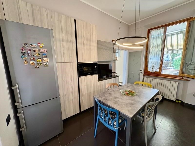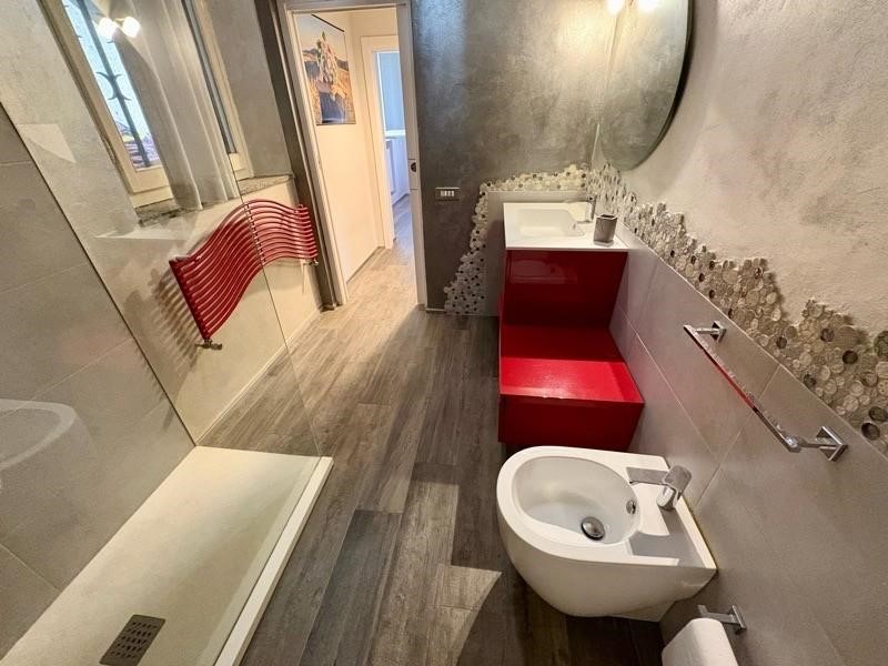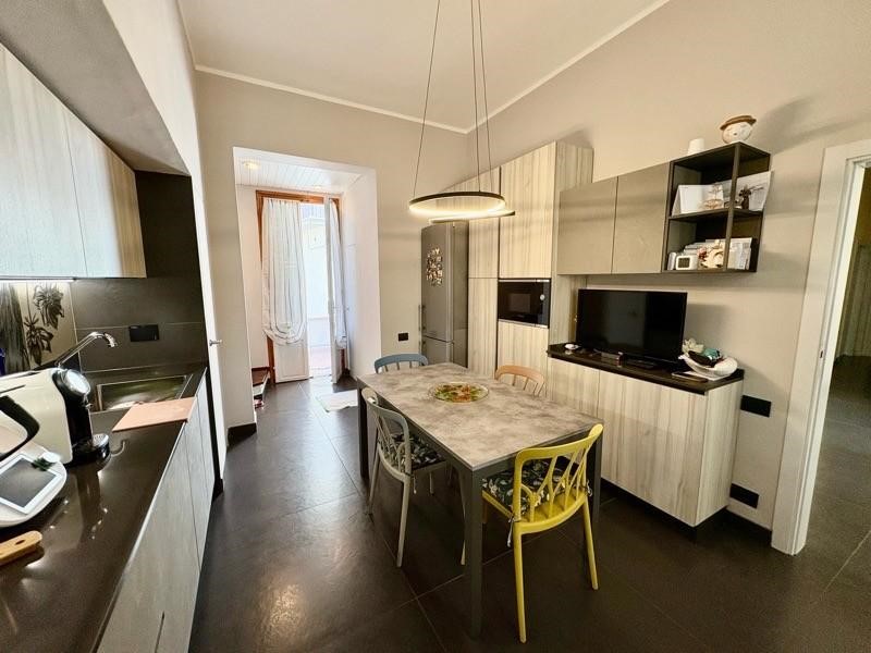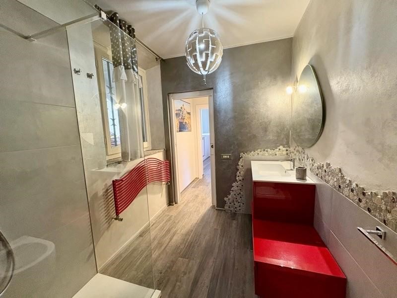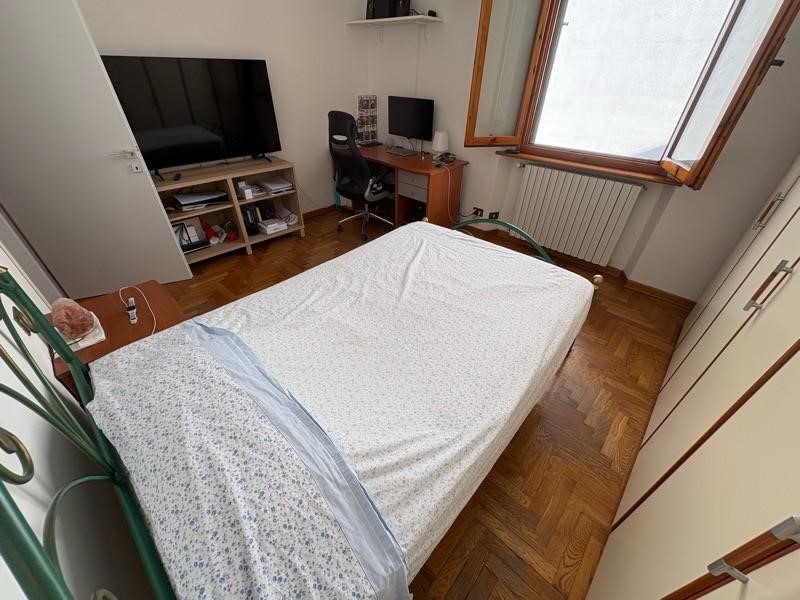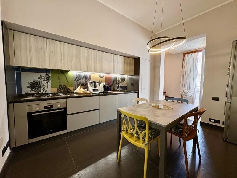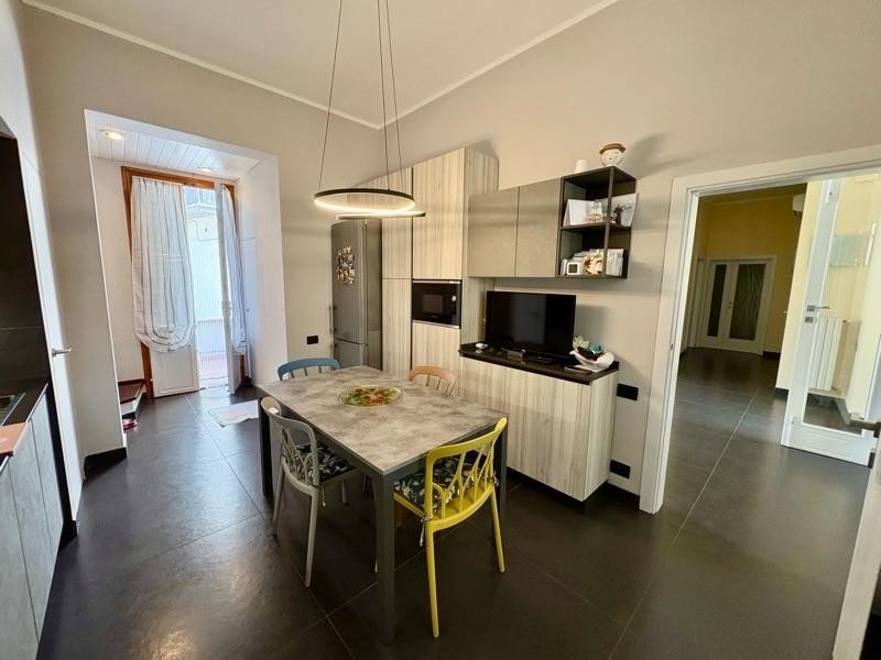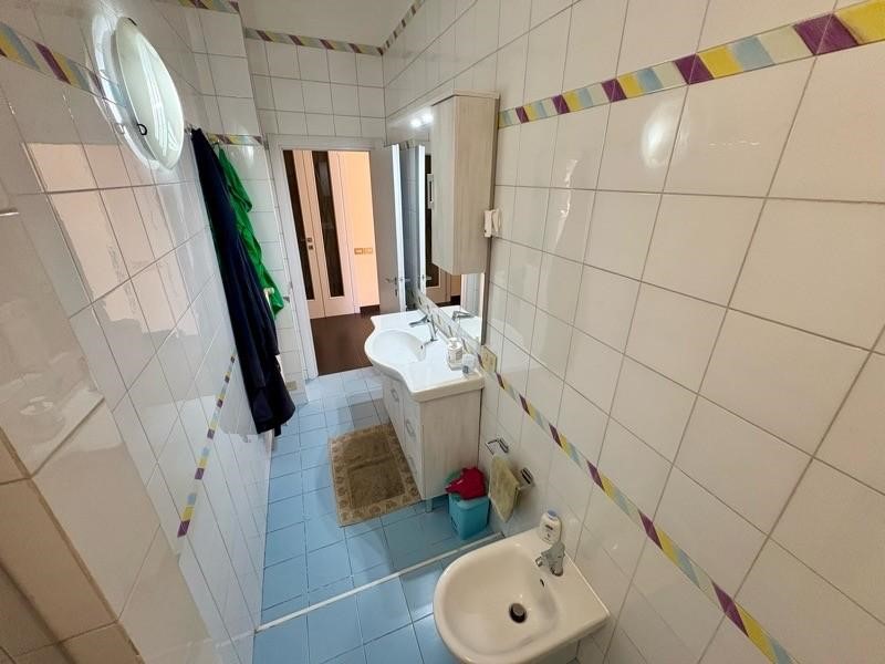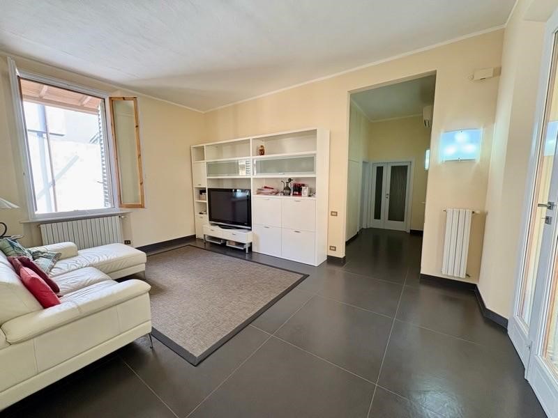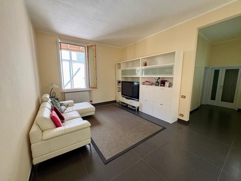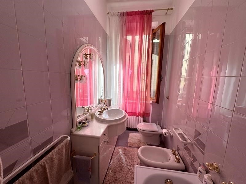 Appartamento al primo piano: comprende una cucina abitabile, grande soggiorno con due balconi, due bagni, tre camere, ripostiglio e accesso alle soffitte.