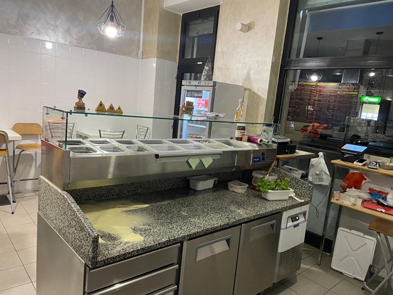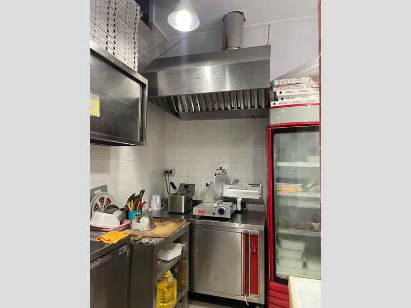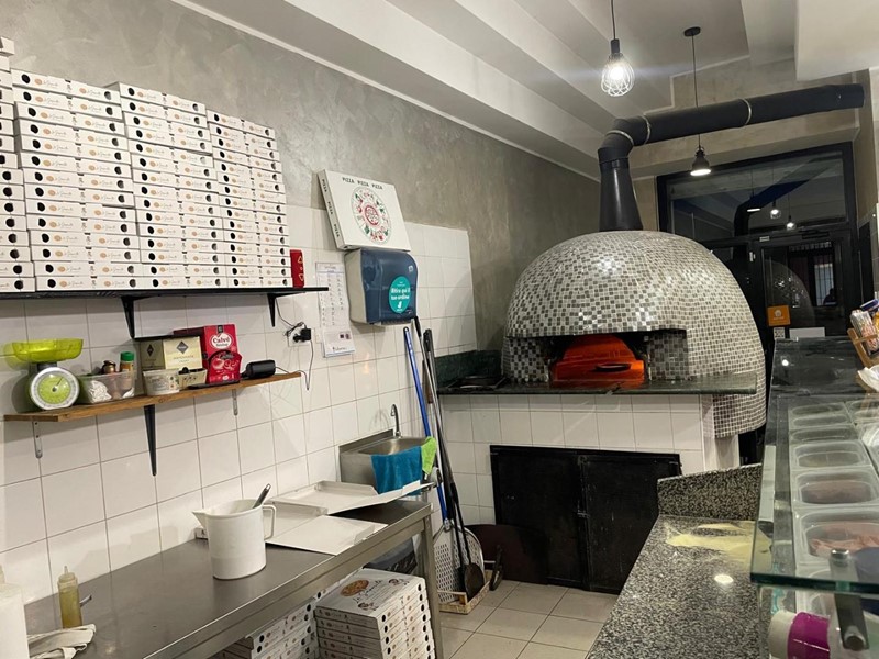 L’attività si svolge su una superficie di 50 mq. dove troviamo ingresso con circa 8 sedute alte, banco pizza, 2 CANNE FUMARIA in acciaio indipendenti una per il FORNO A LEGNA e l’altro per la cucina con cappa oltre che ai servizi igienici interni; al piano S1 troviamo inoltre magazzino e ripostiglio.