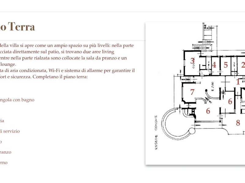 La villa dispone di quattro camere doppie e tre camere singole, per un totale di 11 ospiti, ideale per soggiorni esclusivi all’insegna del comfort e della privacy.