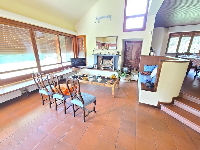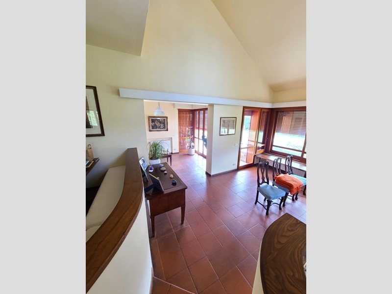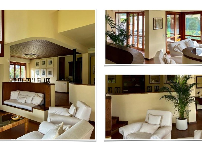 Il piano terra della villa si apre come un ampio spazio su più livelli: