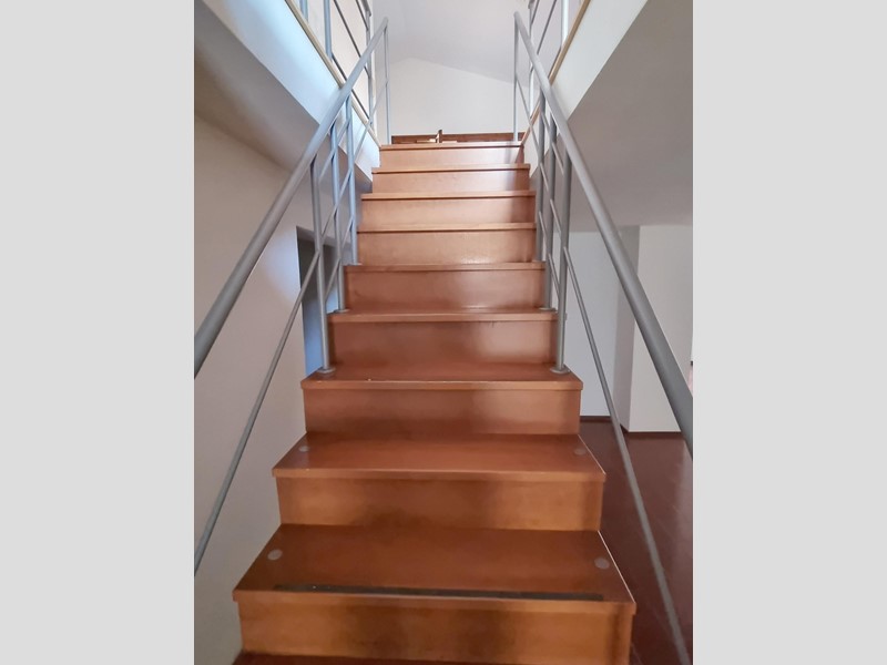 COMPOSIZIONE: ingresso al piano terra con scala esclusiva interna che ci accompagna al piano primo dove è disposto un grandissimo salone con camino ad angolo e cucina; questo spazio può essere usufruito con la disposizione attuale open-space, oppure suddiviso in più ambienti data la sua grandezza; dal salone si accede alla terrazzina esterna; al piano leggermente sfalzato ed a vista, concezione molto moderna, è disposto il reparto notte dove ci sono tre camere e due bagni (entrambi finestrati), il tutto disimpegnato da ampio corridoio; dalla camera centrale si accede ad un balcone.