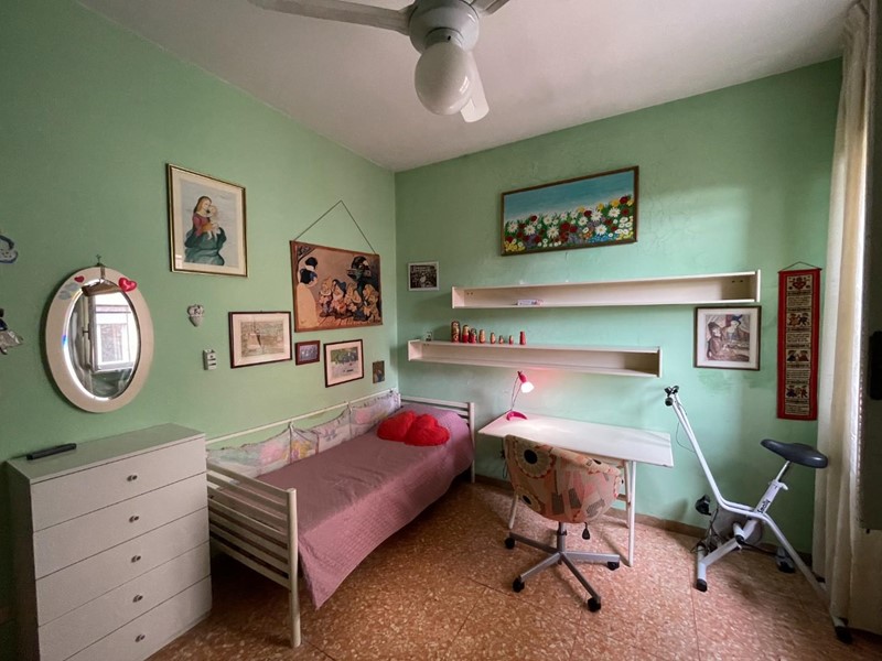 L’appartamento è composto da ingresso, ampio soggiorno con balcone, cucina e tinello con accesso al balcone e ripostiglio nella zona giorno; disimpegno, camera matrimoniale con balcone, due camere doppie e un bagno finestrato con vasca nella zona notte.