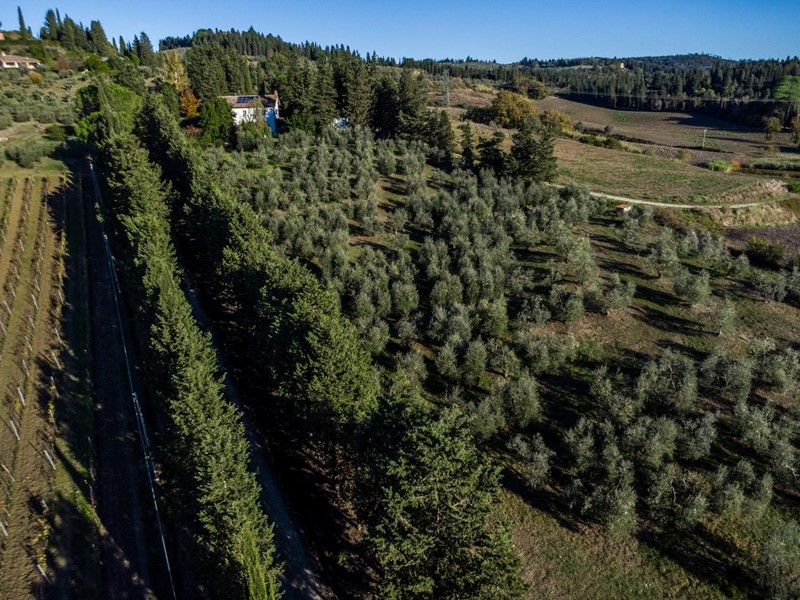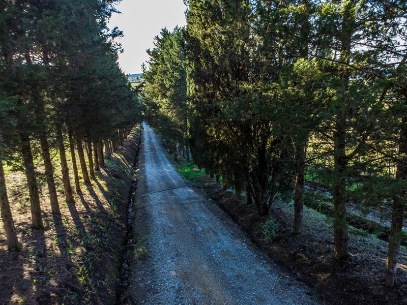 L’accesso avviene tramite un suggestivo viale privato di cipressi lungo circa 300 metri, che attraversa i vigneti e gli oliveti di proprietà e conduce alla villa principale, posta in posizione dominante con affacci panoramici sul verde circostante.