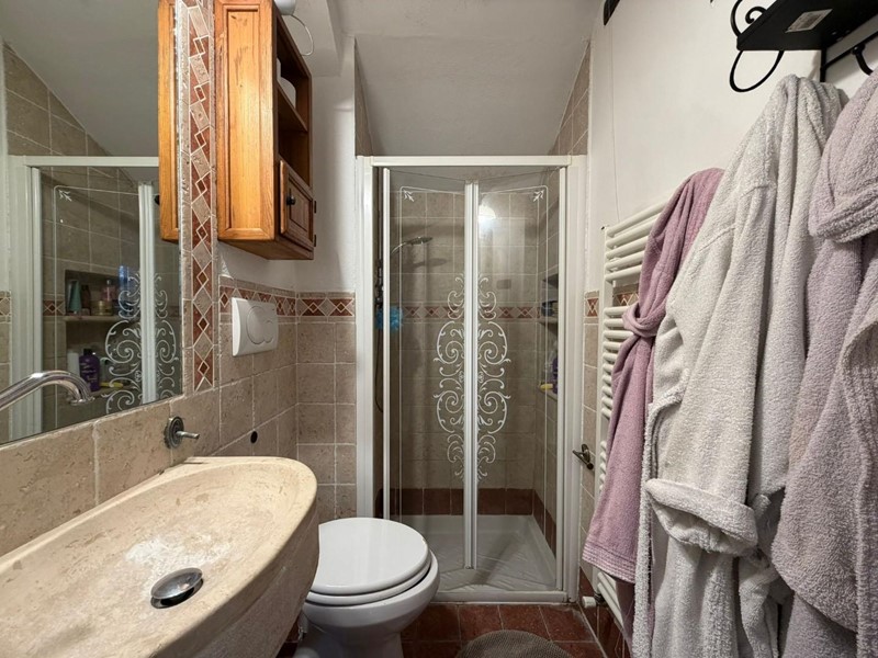 Bagno di servizio per gli ospiti, elegante e dotato di doccia.