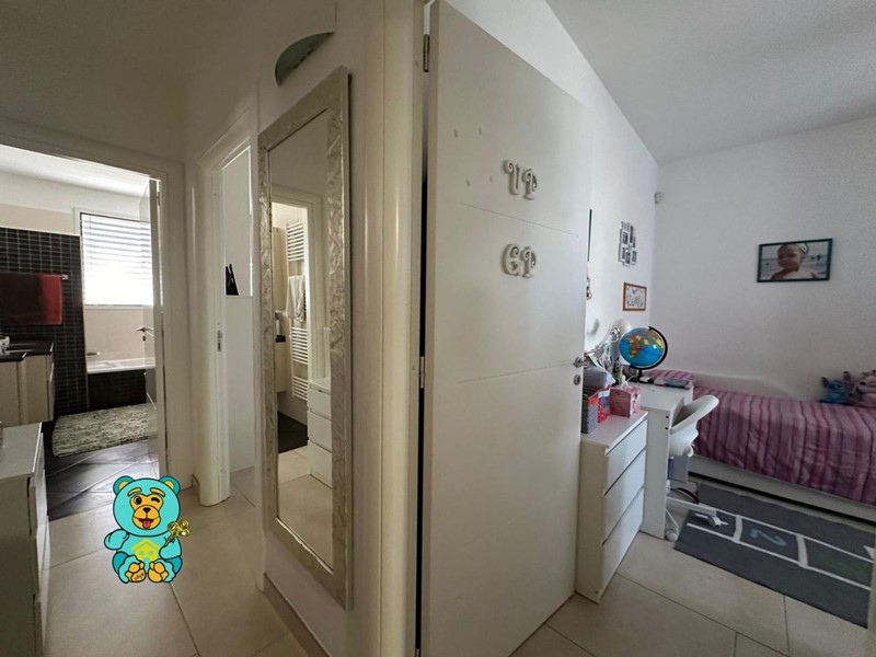 Il piano primo con altro ingresso è composto da soggiorno open space con angolo cottura a vista e affaccio su uno spazioso terrazzo a livello, la zona notte è composta da ripostiglio, due camere da letto singole, camera matrimoniale e due bagni di cui uno finestrato con box doccia e l'altro con vasca.