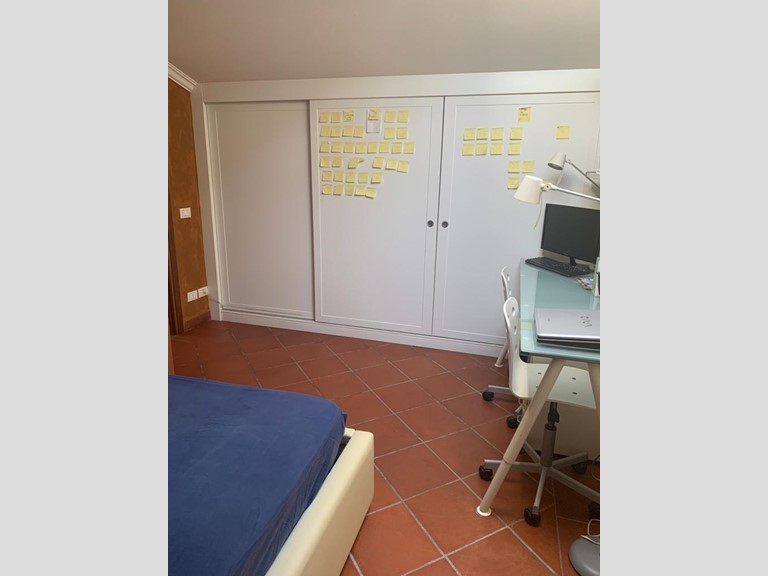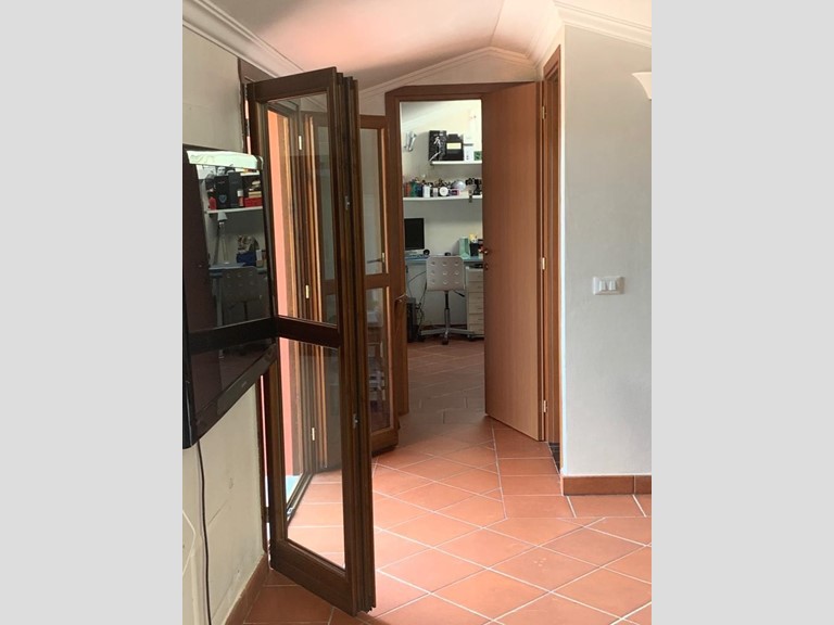 Pontedera (loc. Chiesino) - Appartamento su 2 livelli: 1°piano più mansarda, di circa 130 mq con giardino e resede con vari posti auto, in contesto residenziale esclusivo, in campagna, ma vicinissimo al servizio pullman per Pisa. Composto al 1°piano da ampia terrazza, ingresso/soggiorno, tinello, cucinotto, 2 camere (matrimoniale e media) e bagno. In mansarda: altra sala o cucina grande, camera con cabina armadi e bagno. A piano terra veranda in muratura di circa 30 mq e terreno aggiuntivo di circa 50 mq. Classe energetica "G". Prezzo € 255.000 trattabili. Rif. W3876AQ
