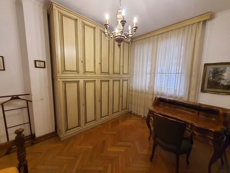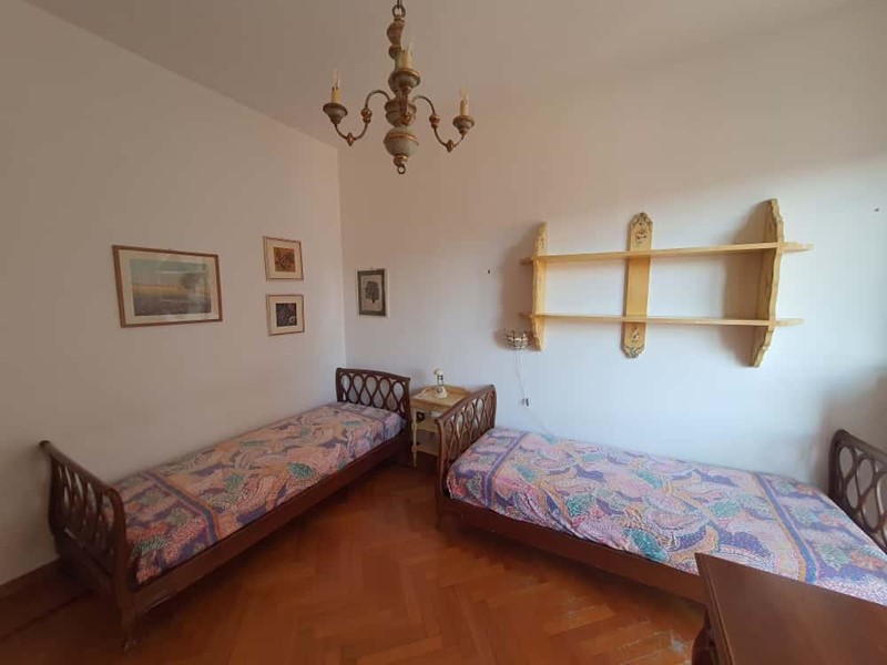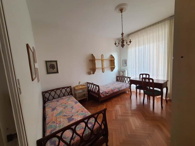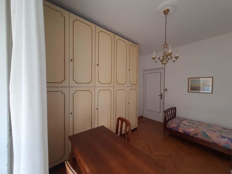 Ingresso, salone doppio con balcone, cucina con veranda e sala da pranzo, reparto notte con 3 camere, 2 bagni. Armadi a muro. Termo-centrale.