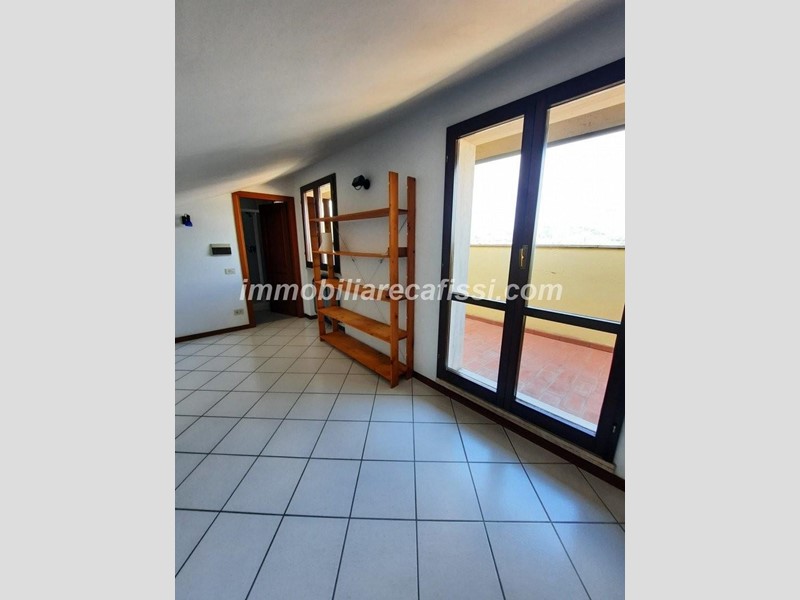 L' immobile è composto da ingresso in ampia zona giorno con terrazzo, cucina con ripostiglio ed altro terrazzo, disimpegno, due camere matrimoniali e doppi servizi, oltre piano superiore con soffitta praticabile predisposta come monolocale con servizio e terrazzo a tasca e con la possibilità di realizzare eventuale collegamento con scala interna.