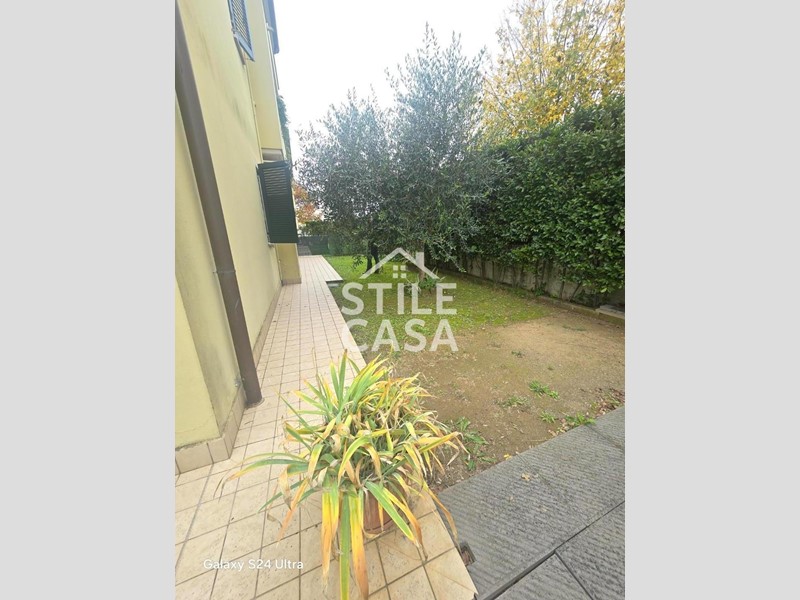 L’appartamento è abbracciato da un ampio giardino su 3 lati, uno spazio verde che diventa una vera e propria estensione della casa: