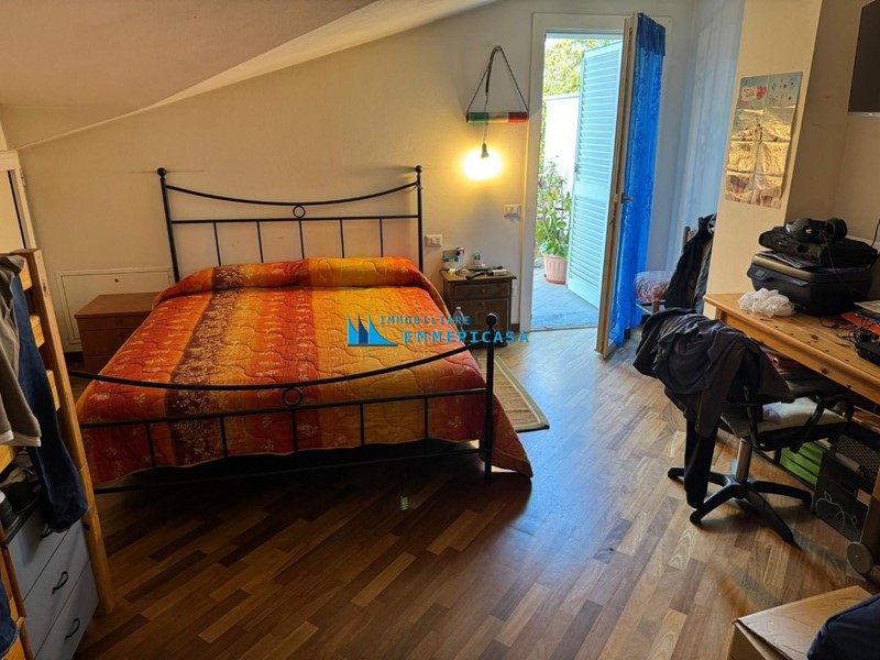 A circa 1.200 metri dal mare, in piccola palazzina quadrifamiliare senza spese condominiali si vende appartamento al piano primo oltre mansarda di recente costruzione, composto da: ingresso, soggiorno/pranzo con accesso a doppia terrazzina di cui una con zona lavanderia, angolo cottura, ripostiglio, 1 ampia camera matrimoniale e 1 bagno con doccia al piano primo; 1 camera matrimoniale con terrazza e 1 bagno con doccia al piano superiore mansardato. Giardino privato a piano terra con posto auto interno. AFFARE!!!!