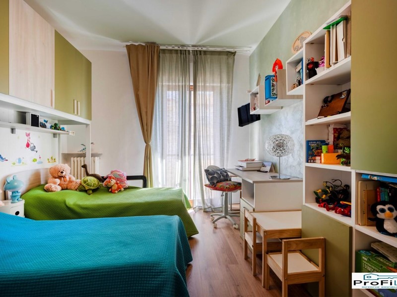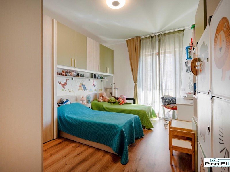 L'appartamento è ubicato al piano primo, ed è composto da: ingresso con ampio soggiorno, due vani letto, cucina abitabile, due bagni, ripostiglio, balcone, pertinenziali vano deposito a piano terzo e posto auto coperto in autorimessa a piano interrato.