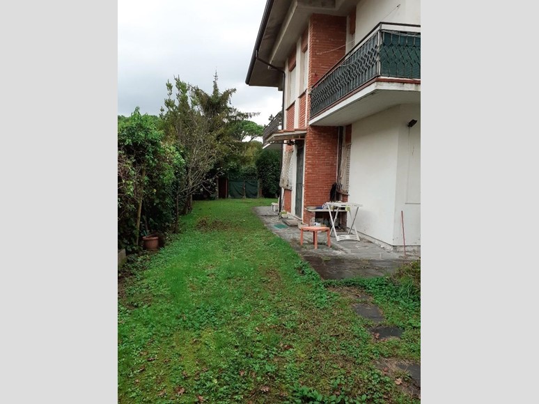 appartamento P.1° con scala di ingresso indipendente, composto da ampio soggiorno luminoso, cucinotto, due camere doppie bagno, ripostiglio che potrebbe diventare un 2° bagno oltre a balconi e giardino con ingresso indipendente con posti auto interni