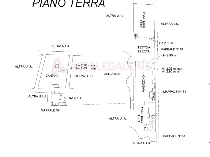 Nel Comune di Condove (TO) – via Francesco Re n. 33 - piena proprietà dei seguenti immobili: complesso immobiliare di civile abitazione edificato sull’ente urbano di 83,00 mq. catastali , con entrostanti i seguenti immobili: - al piano terreno (1° f.t.): un locale magazzino con servizio igienico e tettoia aperta, con antistante e retrostante area cortilizia esclusiva; - al piano primo (2° f.t.) con accesso da scala esterna: un alloggio composto da ingresso su cucina, una camera, servizio igienico e terrazzo (dichiarato inagibile); - un locale ad uso cantina, di pertinenza del magazzino, posto al piano terreno di altro fabbricato del civico n. 27 della via Francesco Re. I piani sono tra loro collegati mediante una scala esterna.