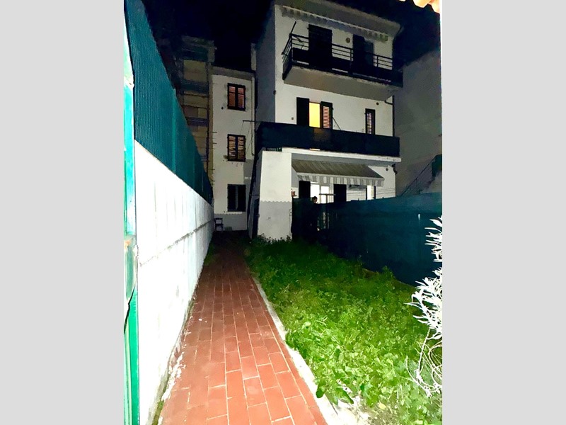 Appartamento INGRESSO INDIPENDENTE di circa mq. 90 posto al primo piano composto da ingresso, soggiorno con terrazzo, cucinotto, tre camere di cui una con altro terrazzo tergale, bagno finestrato oltre a garage e giardino tergale di circa mq. 70 .