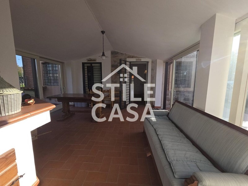 Porcari - In zona tranquilla abbiamo una bella villa singola libera su 4 lati composta da: ingresso, soggiorno molto ampio, cucina abitabile, due bagni con doccia e 2 camere matrimoniali al piano terra. Al piano primo abbiamo 3 camere matrimoniali, una camera doppia e due bagni con doccia. Al piano secondo ed ultima 4 vani ad uso soffitta ma in buona parte praticabili e tutti rifiniti in pvc e un ulteriore bagno con doccia. A corredo taverna con forno a legna, garage e cantina con l accesso dall interno dell abitazione. L'immobile è circondato da giardino per un totale di circa 800 mq, cancello carrabile e pedonale e ulteriore forno a legna e ripostiglio esterno in muratura molto antico. L immobile è stato tutto ristrutturato negli anni 2002 ed è in perfette condizioni, con infissi in doppio vetro e persiane in alluminio, aria condizionata e impianto d allarme perimetrale. Si presta bene per potrelo dividere in due famiglie o per crearci un b & b o un hotel vista la disposizione delle camere e dei bagni. Ottimo affare!!!!