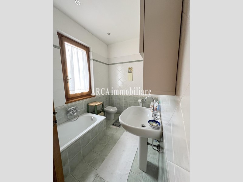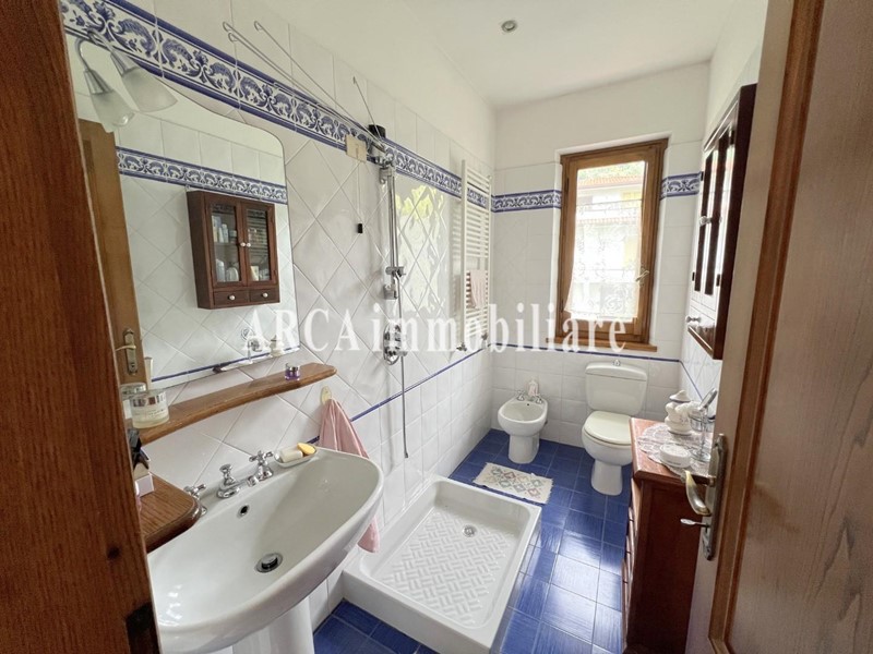 PIETRASANTA non lontano dal centro storico, villa in bifamiliare (costruita nel 1995) in ottimo stato di manutenzione composta da veranda, soggiorno, cucina abitabile, studio o cameretta e servizio al piano terra, camera matrimoniale con bagno privato e balcone, camera media con balcone, camera singola e altro bagno al primo piano. Taverna con camino e altri 2 vani nel seminterrato, Giardino su 3 lati in più resede di proprietà privata per posti auto. Bella posizione ai piedi della collina