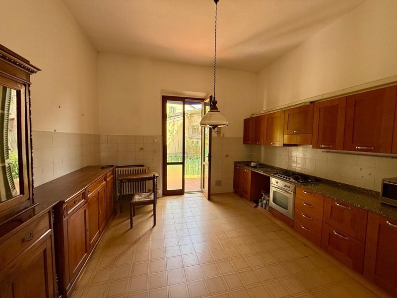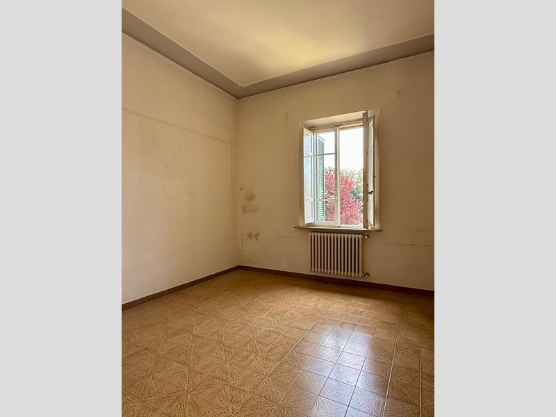FORCOLI - In posizione centrale, grande appartamento posto al primo e ultimo piano con ingresso in bifamiliare. Ampio ingresso e scale interni per l'accesso all'appartamento così disposto: disimpegno, soggiorno con studio (terza camera) , cucina abitabile con terrazza, due camere matrimoniali e bagno. Dalla terrazza si accede al giardino con locale caldaia e locale pluriuso. L'appartamento ha riscaldamento autonomo e condizionatore. Possibilità di acquistare locale commerciale/garage sottostante.