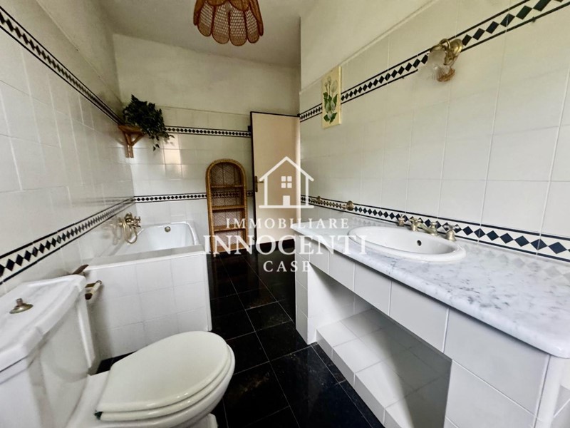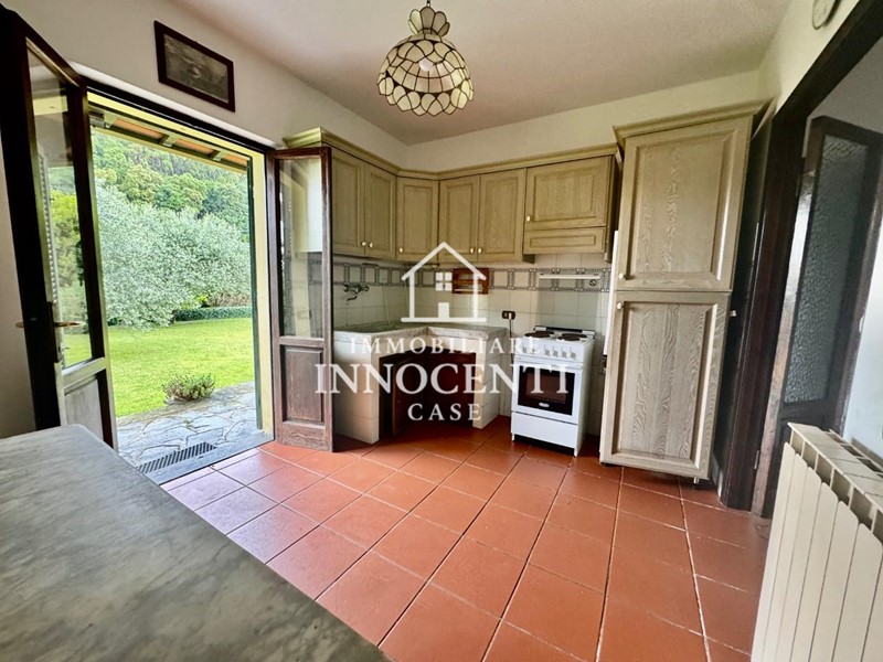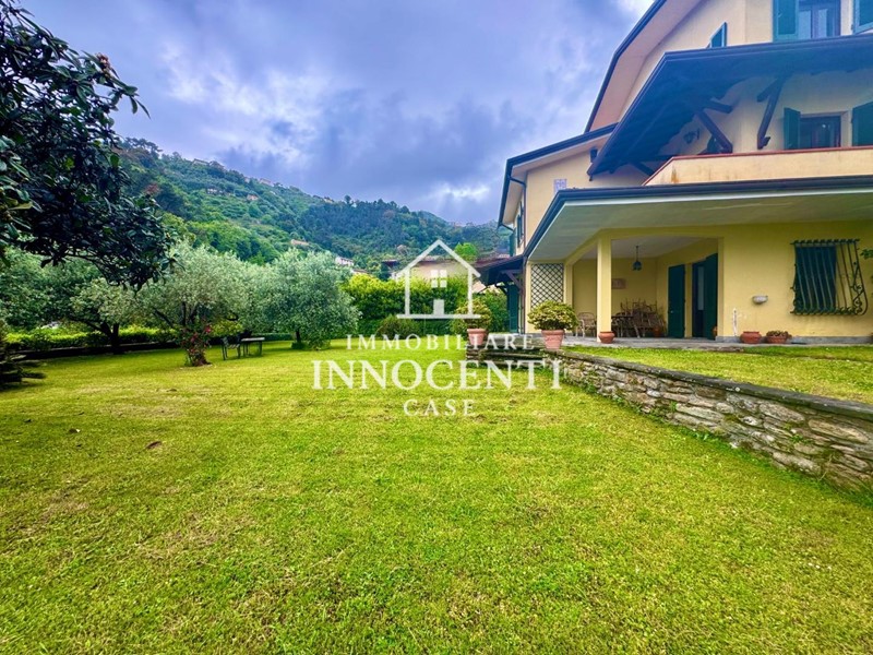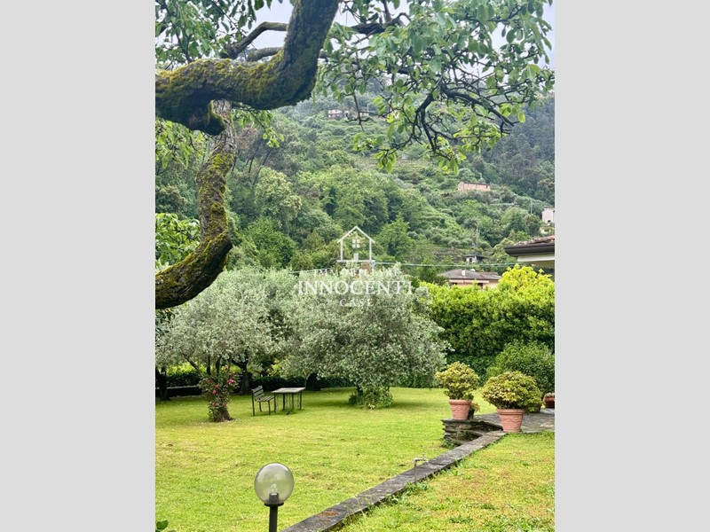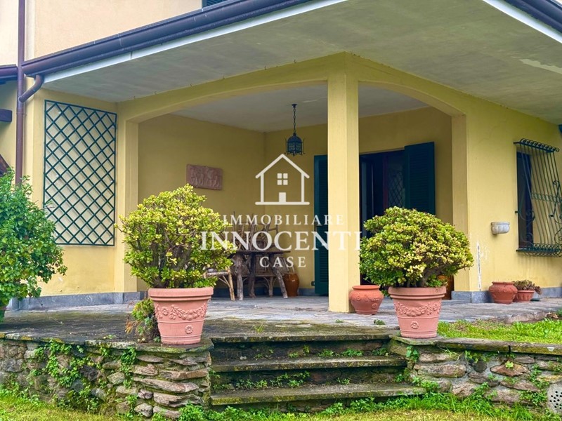Montignoso - Località Capanne, Si vende ampia porzione di bifamiliare sviluppata su tre piani fuori terra e corredata da circa 1300mq di giardino con diversi posti auto interni. L'immobile se pur in ottime condizioni necessità di lavori di ammodernamento. Si compone al suo interno di ingresso su ampio soggiorno dal quale si accede ad una meravigliosa veranda che affaccia sul giardino, cucina con dispensa e bagno finestrato con doccia al piano terra; ampio disimpegno zona notte che serve una camera matrimoniale con balcone vista mare, una camera singola e bagno con vasca e finestra al piano primo; camera matrimoniale e camera doppia all'ultimo piano.