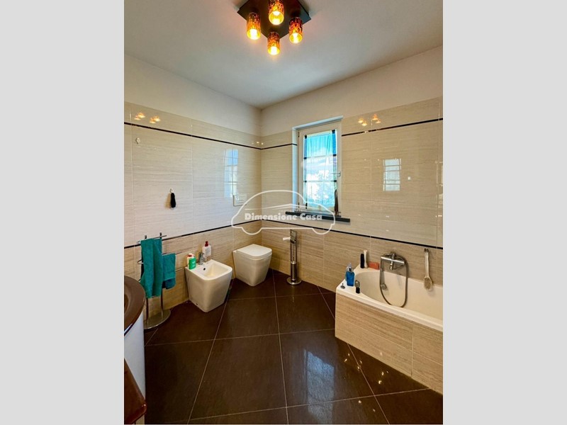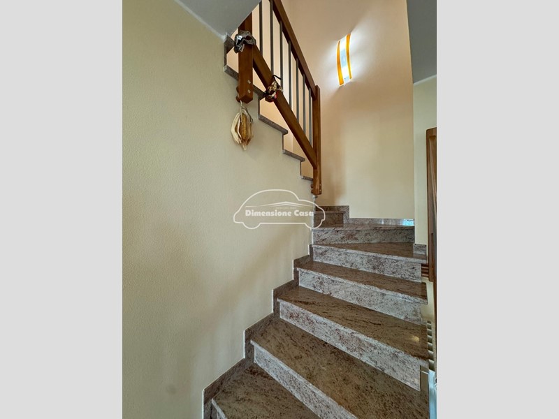 Al 1°P disimpegno due camere matrimoniali di cui una con bagno privato e terrazzo, camera singola con terrazzo, bagno padronale con vasca. Soffitta ad uso ripostiglio. La casa di recente costruzione, si presenta in ottime condizioni di manutenzione, gli infissi sono in legno con vetro camera, persiane e zanzariere, materiali di finitura quali porte, pavimenti e rivestimenti sono extra capitolato, allarme perimetrale e volumetrico.