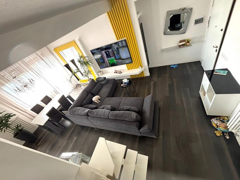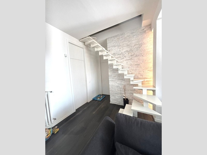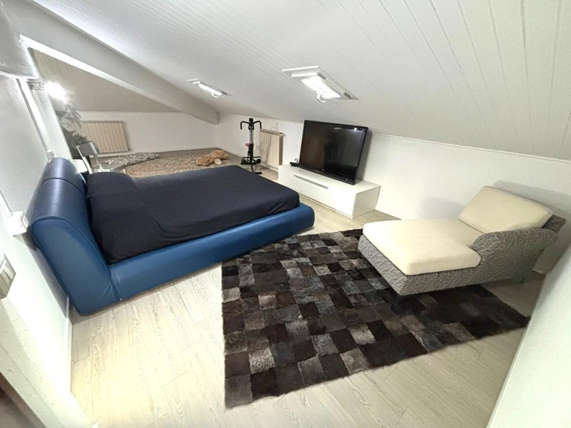 Dal living, mediante scala a giorno in stile moderno si raggiunge in doppio volume aperto, un ulteriore vano sottotetto attualmente utilizzato come terza camera e da sfruttare secondo esigenze, oltre comodo ripostiglio.