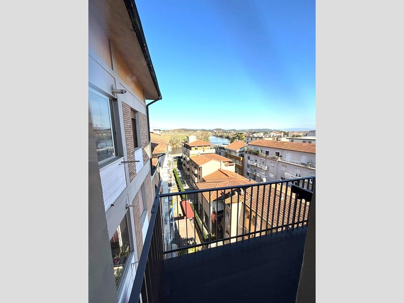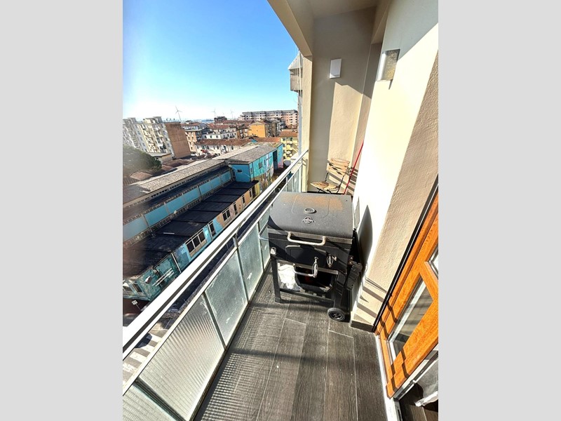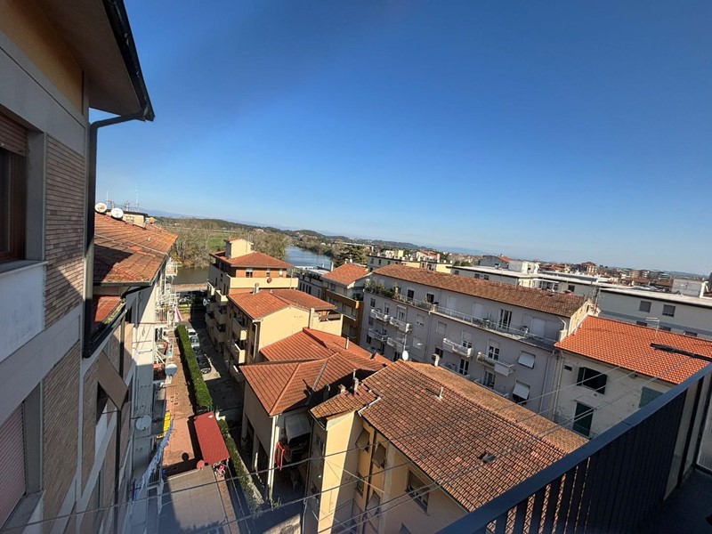 Al sesto e ultimo piano di un maggior fabbricato dotato di ascensore nel centro di Pontedera, in prossimità sia di Corso Matteotti che della Stazione, entrambi raggiungibili con una breve passeggiata, questo appartamento di 110 mq circa per 5 vani, elegante e di concezione moderna, garantisce privacy e offre una vista panoramica unica.