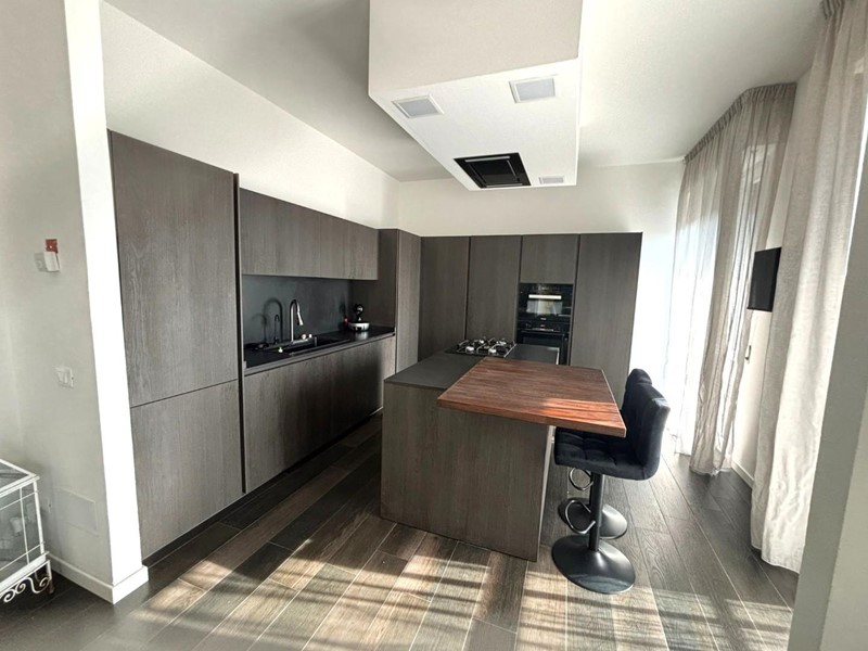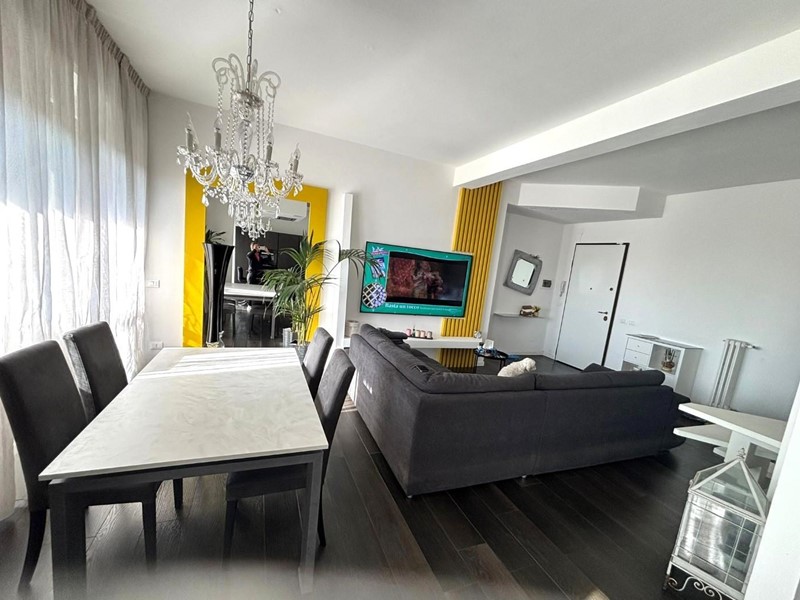 L’ingresso apre su una grande zona giorno eccezionalmente illuminata da ampie vetrate esposte a sud: living con zona pranzo e ampia cucina con isola, realizzati con un raffinato gusto moderno e una ricercata praticità con accesso alle due deliziose logge con affacci liberi sull’orizzonte.