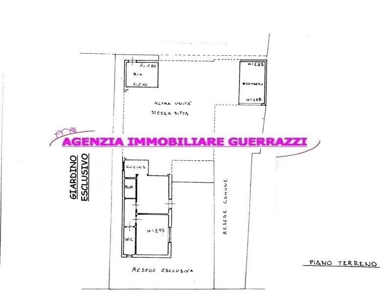 L'immobile complessivamente è formato da sole due unità immobiliari. L'appartamento oggetto di vendita è posto al piano terra (al primo piano non vi sono altri appartamenti) sviluppato tutto su un unico piano e al suo interno così composto: ingresso in soggiorno con camino, angolo cottura, disimpegno zona notte, ripostiglio, camera matrimoniale e bagno. L'appartamento necessita di essere ammodernato ma comunque è abitabile. Dispone di riscaldamento autonomo a metano, tricamerale, acquedotto. Il giardino essendo in parte edificabile è possibile ampliare l'immobile e creare la seconda camera. Possibilità di creare l'accesso carrabile esclusivo in modo da poter mettere le macchine all'interno della proprietà esclusiva. Prezzo trattabile.