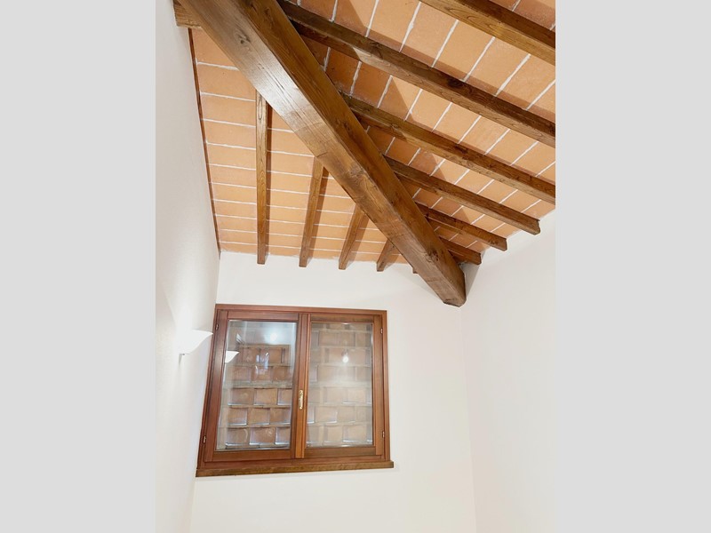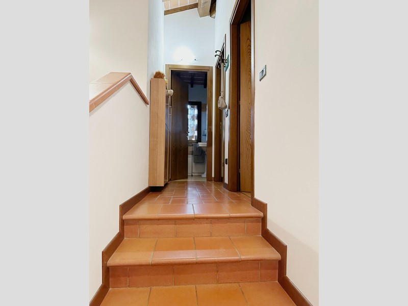 Ampio ingresso, salone di circa 45 mq con travi a vista e canna fumaria già predisposta per l’installazione di un camino, cucina abitabile con stufa a legna, comoda dispensa, due camere matrimoniali con pavimenti in parquet, bagno con doccia, locale tecnico/lavanderia e box auto di circa 30 mq con accesso diretto a una grande soffitta utilizzabile come deposito.