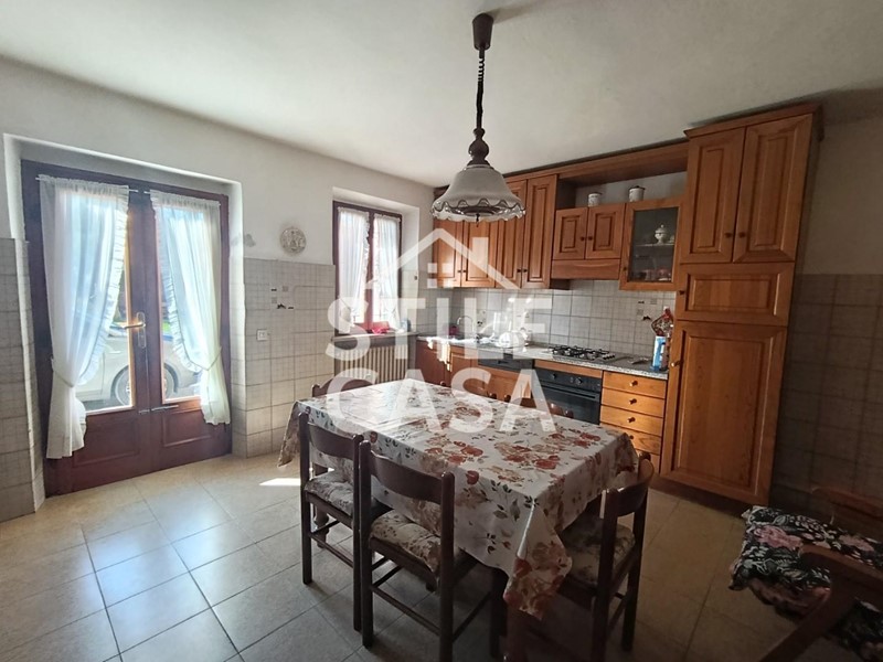 La casa è così composta al piano terra si trova cucina con camino, sala, una stanza plurifunzione (camera, studio, sala pranzo...), bagno con finestra e doccia, ripostiglio e cantina. Sia la stanza pluriuso che la cantina hanno l'accesso diretto al giardino di proprietà che si trova sul retro della casa, dove si trova anche il locale tecnico. Il giardino che si sviluppa in verticale è circa 3500 mq , sulla proprietà insiste anche un pozzo privato