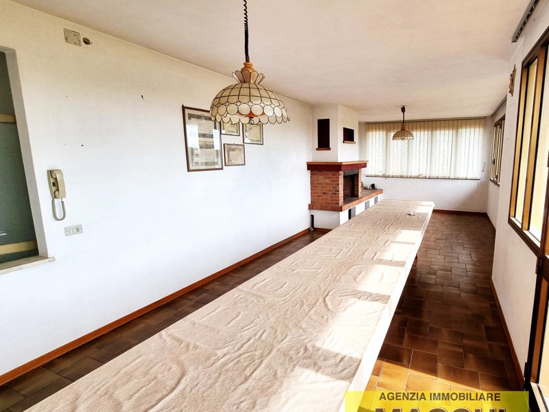 COMPOSIZIONE: PIANO TERRA con ingresso, due vani pluriuso con camino e garage in adiacenza collegato internamente; PIANO PRIMO con soggiorno, cucinotto, disimpegno, due camere e bagno oltre due balconi; PIANO SECONDO E ULTIMO, bellissimo ambiente ricavato dalla terrazza coperta con camino, spazio ideale per convivialità, studio, hobby, ecc... Da questo bellissimo ambiente panoramico si accede al terzo balcone scoperto.
