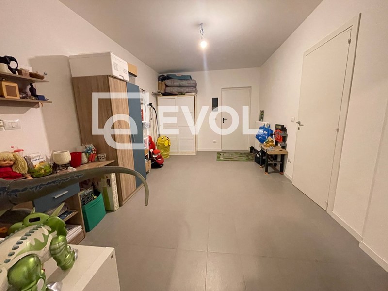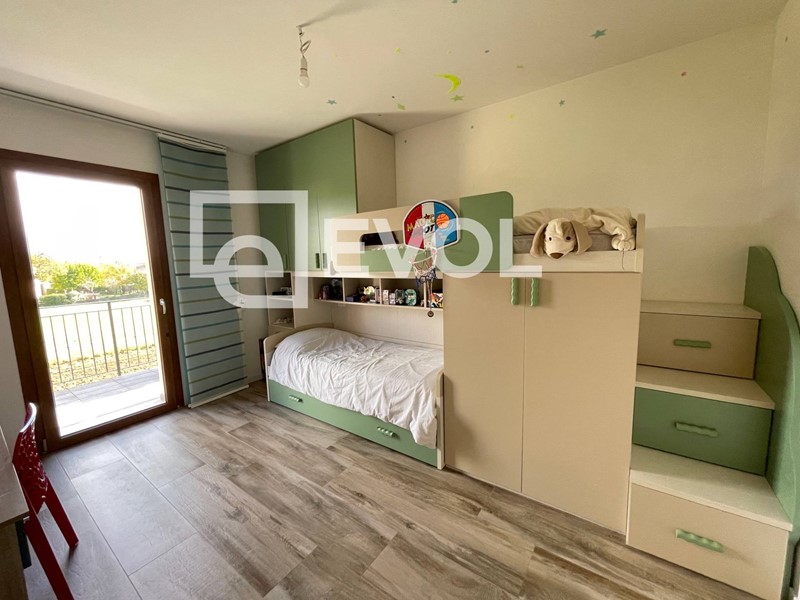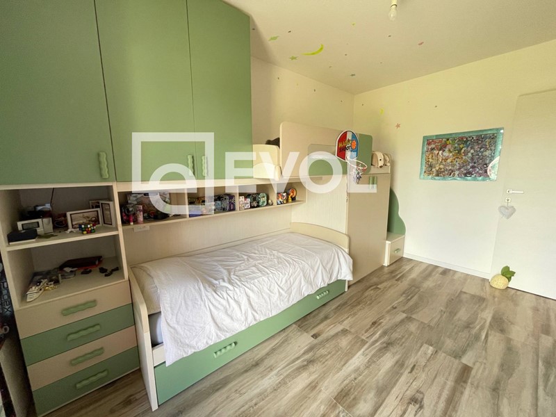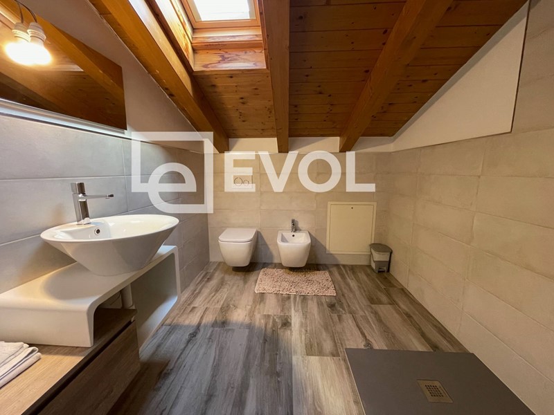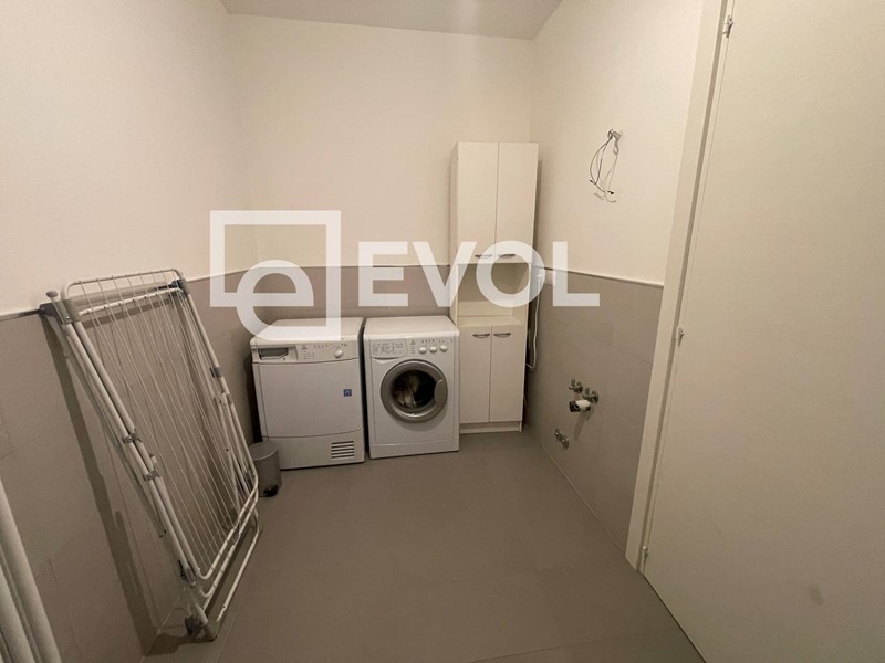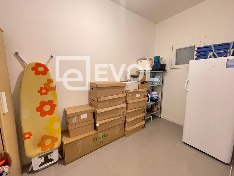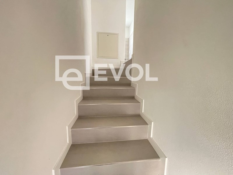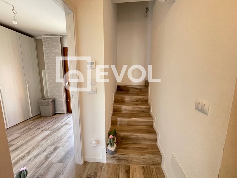 La zona giorno di 29 mq accoglie un luminoso living arricchito da una pavimentazione in gres porcellanato con piastrelle di dimensioni 120X60 e una cucina di ultima generazione, caratterizzata da linee pulite e materiali di qualità. Un comodo guardaroba nel vano scale completa il piano, aggiungendo praticità alla quotidianità. L'unità è attrezzata con riscaldamento a pavimento, tre split, uno per piano e sistema AVM per il cambio dell'aria interna.