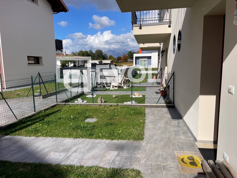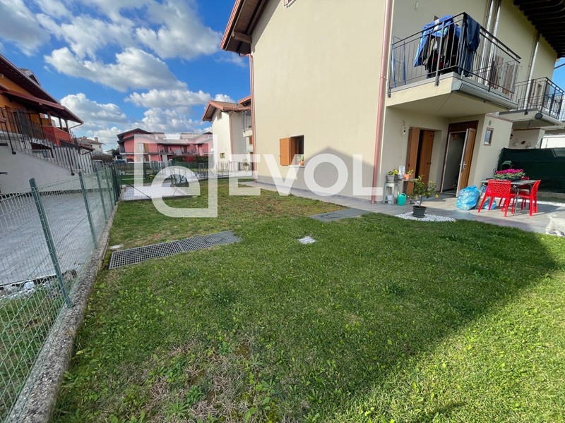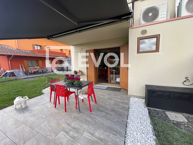 Dalla cucina si accede al patio esterno, protetto da tenda da sole, e al giardino esclusivo dotato di impianto di irrigazione, che abbraccia la proprietà su tre lati, ideale per vivere momenti all'aria aperta.
