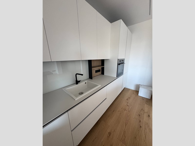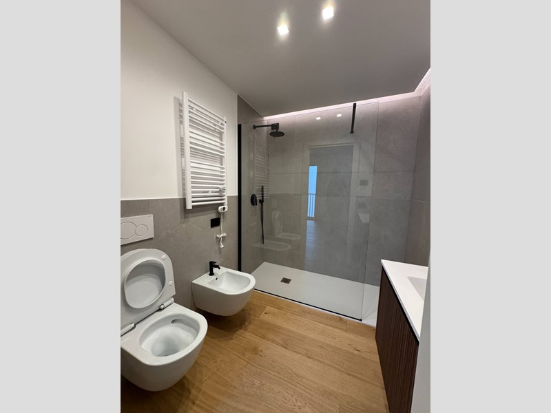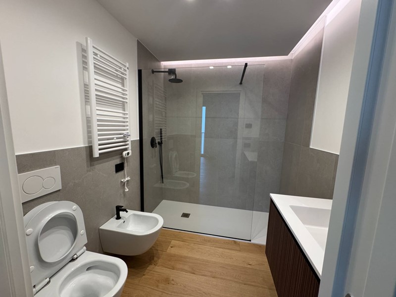 Si tratta di un appartamento di 82 metri quadrati situato al primo piano di un edificio costruito nel 2025, dotato di ascensore e situato nella zona Fuori Mura Nord di Treviso.