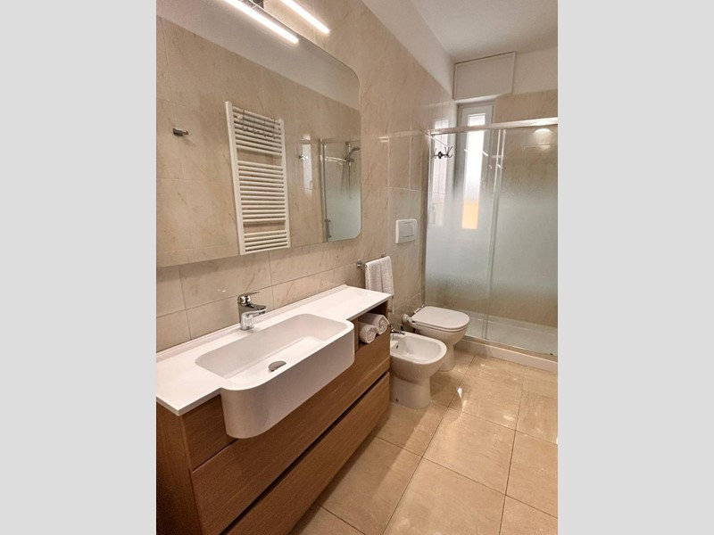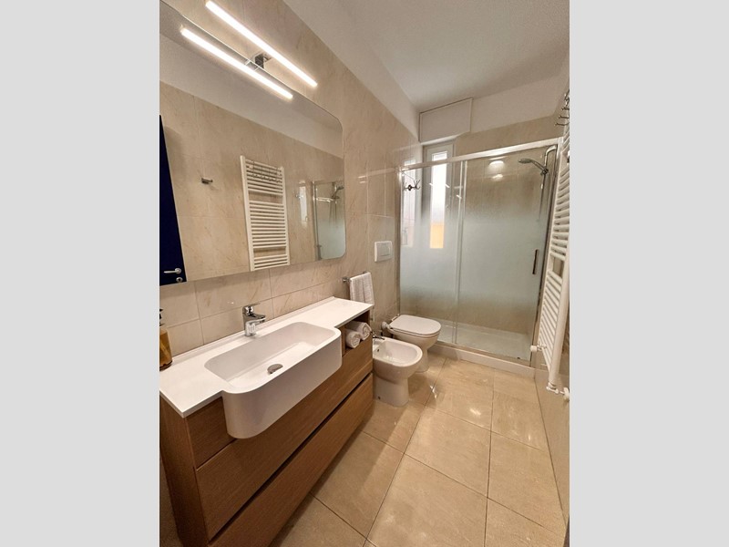 L'appartamento è stato, inoltre, interessato da una recente ristrutturazione che ha previsto il rinnovo completo di pavimenti, porte interne, impianto elettrico e idrico; dispone pertanto di infissi con doppio vetro camera a taglio termico, porta blindata, aria condizionata, caldaia ibrida e rifiniture nuovissime.