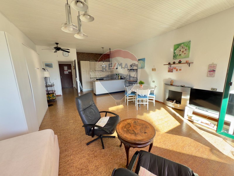 Lunità immobiliare posta in vendita (di circa 60 mq oltre alla terrazza) è composta da ampio ingresso dove trova alloggio il guardaroba cielo-terra, un bagno completo dotato di doccia e lavatrice ed un ampio open-space con angolo cottura nuovo e accessoriato e un unico spazioso locale soggiornopranzo-notte. Dalla porta finestra a tutta parete, in pvc con doppi vetri e dotata di tapparelle elettriche, si accede allampia terrazza panoramica e sempre soleggiata dove è possibile sia posizionare elementi per il relax sia un comodo tavolo da pranzo. La terrazza è dotata di tenda da sole nuova. Le utenze di luce e gas sono autonome, mentre lacqua è compresa nelle spese condominiali. Il termoconvettore è nuovo.