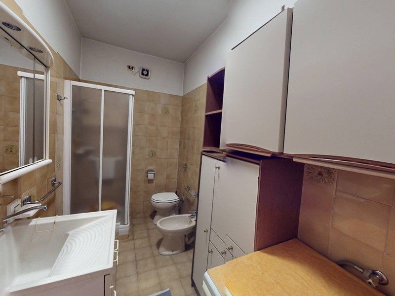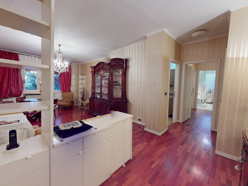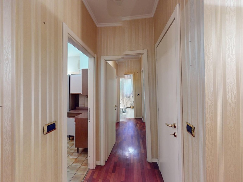 L'appartamento, in buone condizioni interne, è composto da ingresso su ampio soggiorno , cucina abitabile, disimpegno che collega zona giorno con zona notte , due camere di cui una padronale, doppi servizi di cui uno con finestra e comodo ripostiglio.