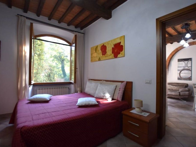 Poggibonsi nei pressi del Palagetto in zona verdeggiante appartamento con ingresso indipendente. L'abitazione si sviluppa al piano terreno ed è di 78 mq c.a. le murature sono grandi ed agevolano la temperatura abitativa in tutte le stagioni; si compone da ingresso, ripostiglio, ampio soggiorno dove è presente un grande caminetto in ceramica, angolo cottura separato da un caratteristico arco a mattoni, due camere e un bagno. L'appartamento è stato oggetto di riammodernamento e diversa distribuzione interna conservando però un sapore rustico Toscano con soffitti a vista a travi e travicelli e in parte a mezzane, gli infissi sono in legno con vetro doppio, zanzariere, gli impianti sono regolarmente funzionanti. Le utenze sono indipendenti e per quanto riguarda la parte termica l'abitazione si scalda con una caldaia a pellet oltre all'aiuto del caminetto presente nella zona giorno, per quanto riguarda la fornitura dell'acqua è presente un pozzo. L'immobile gode di ampi spazi esterni in parte ad uso privato ed altri ad uso comune. Completa la proprietà un capiente locale ad uso magazzino sottostante l'abitazione.