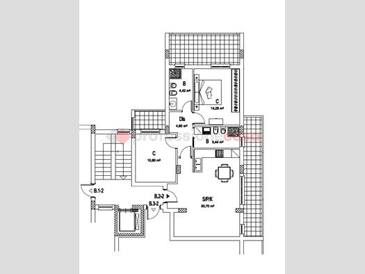 - Trilocale con ampia cucina/sala ,bagno, camere da letto, disimpegno, ulteriore bagno e seconda camera da letto bagno, oltre terrazzino in zona giorno e balconi sulla zona notte , incluso comodo box. auto e cantina.
