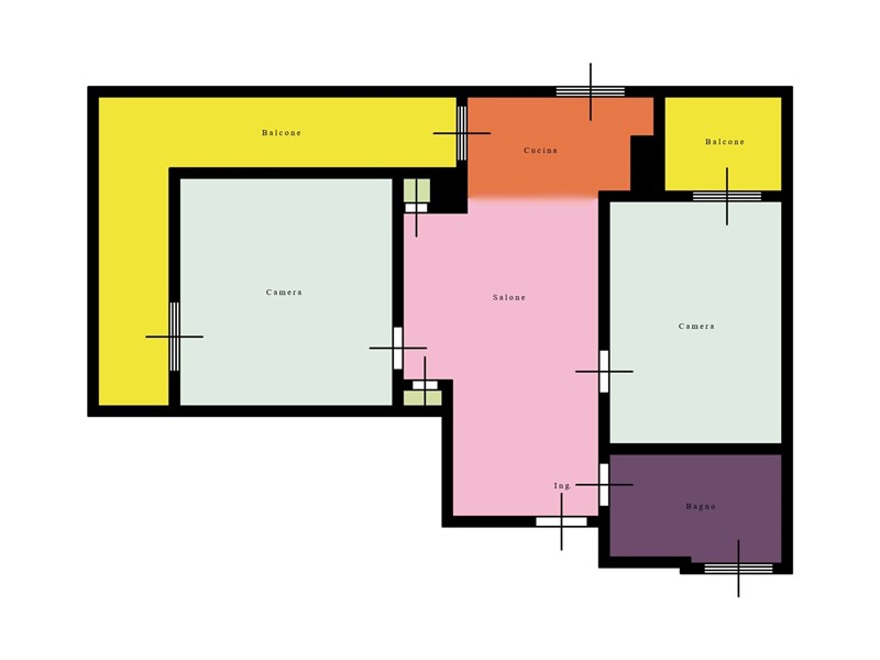 Composto da un ampio salone con cucina a vista, due camere da letto, un bagno e due balconi, garantisce spazi ben distribuiti e confortevoli.