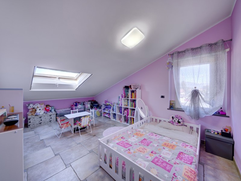 Tutti i serramenti, sia al piano giorno che al piano superiore, sono ad alte prestazioni, con tapparelle elettriche e apertura tradizionale e a vasistas, garantendo massima praticità e luminosità.
